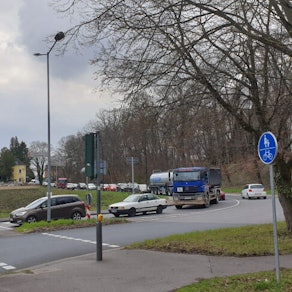 Die Säule im Kreisel vor dem Bauhaus stürzte bei einem Verkehrsunfall Anfang September 2020 auf ein Auto.