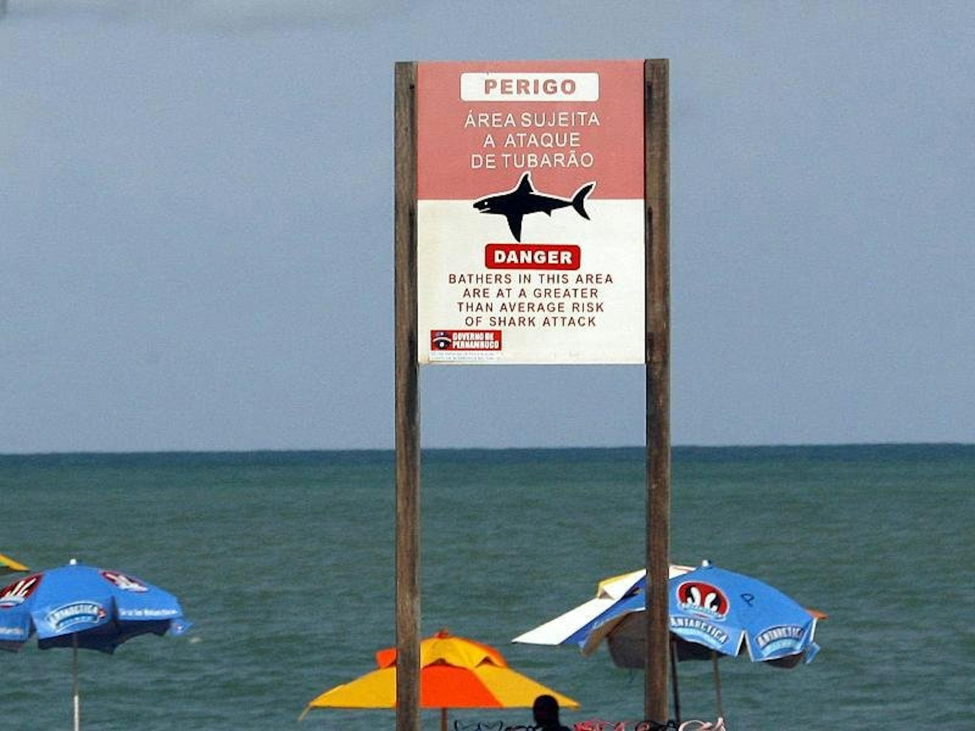 Achtung, Hai: Am Strand von Recife in Brasilien warnt ein Schild vor Angriffen.