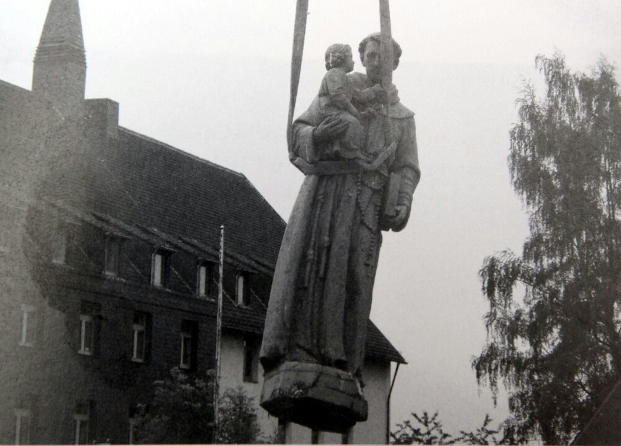 Das Foto von der Antonius-Statue entstand 2014 bei der Abnahme der Figur vom Sockel der Giebelfront.