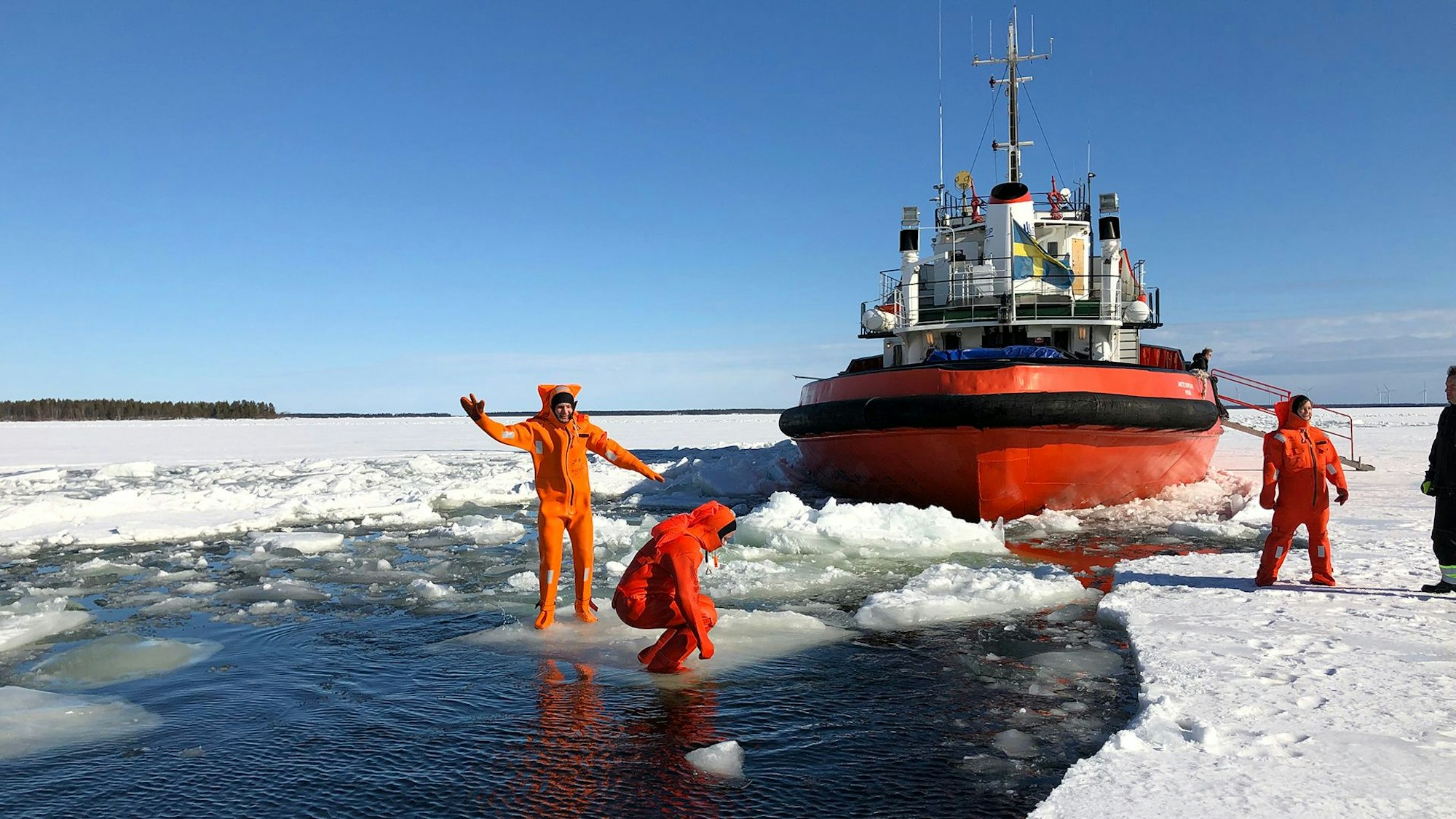 Ein absolutes Highlight: Fahren Sie an Bord eines echten Eisbrechers, spazieren Sie auf dem zugefrorenen Meer und baden Sie in einem Spezialanzug im eiskalten Wasser.