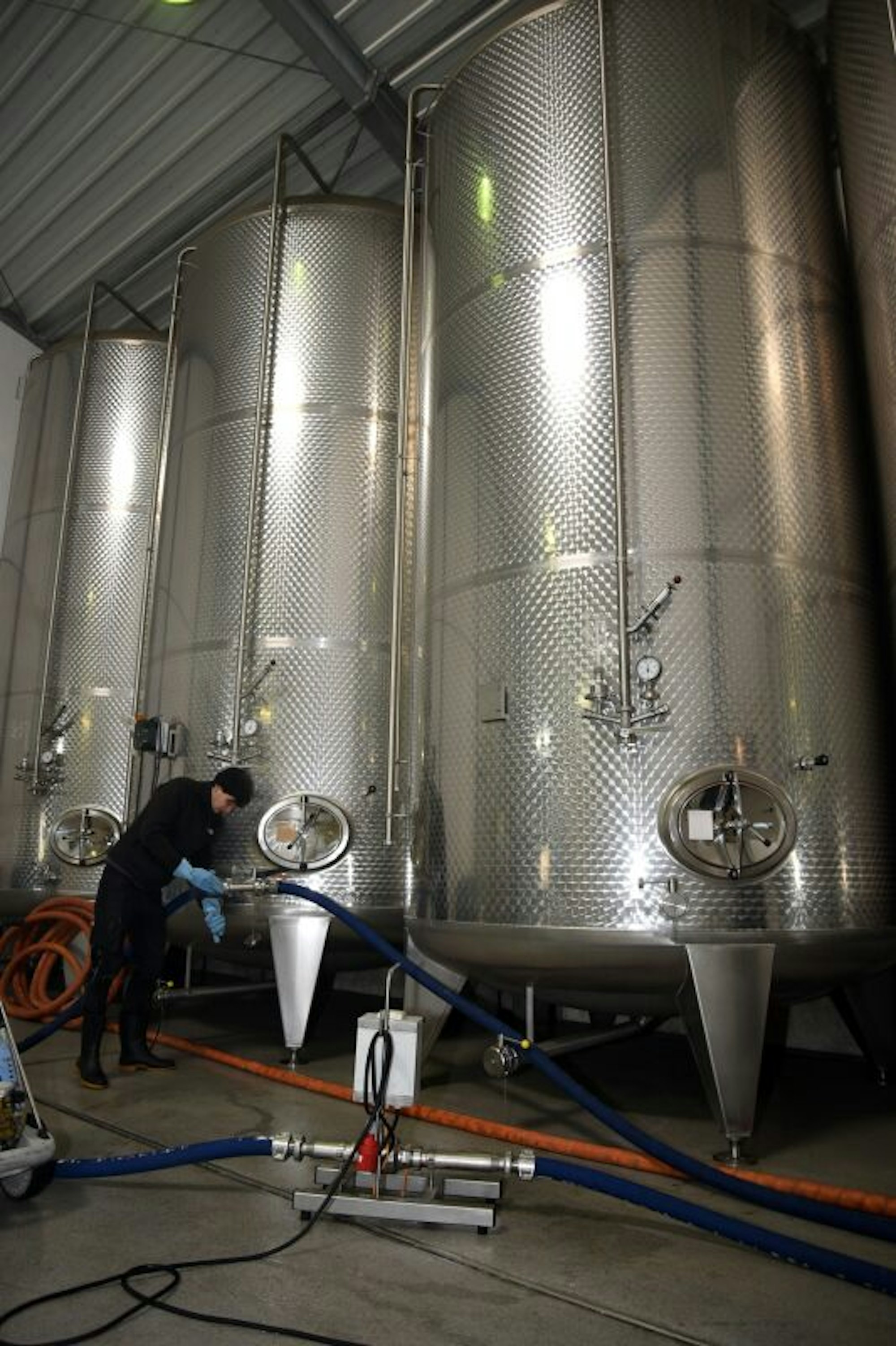 „Ohne Konservierungsstoffe oder Zusätze“ müssen die Webers nicht dazu schreiben, es ist der reine Saft, der in Glasflaschen abgefüllt wird, lediglich für 30 Sekunden auf 90 Grad erhitzt – das überlebt kein Keim. 30 riesige Edelstahltanks, die zwischen 25000 und 32000 Liter Fassungsvermögen haben, dienen der Pasteurisierung.