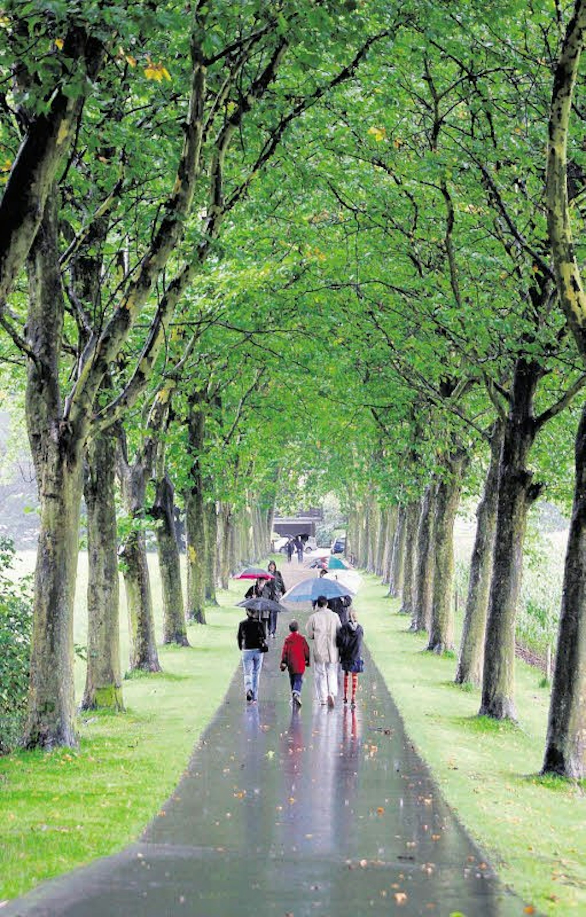 Auch im Regen ein Erlebnis: die Allee zum Schloss Strauweiler in Odenthal.