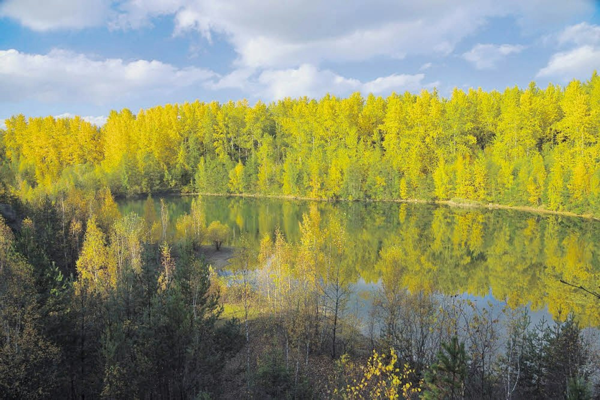 Indian Summer mitten in der Kreisstadt: Vom offiziellen Wanderweg am Rande der unter Naturschutz stehenden Grube Cox bei Heidkamp ist der Herbstwald am Ufer der ehemaligen Dolomit-Gruben besonders reizvoll.