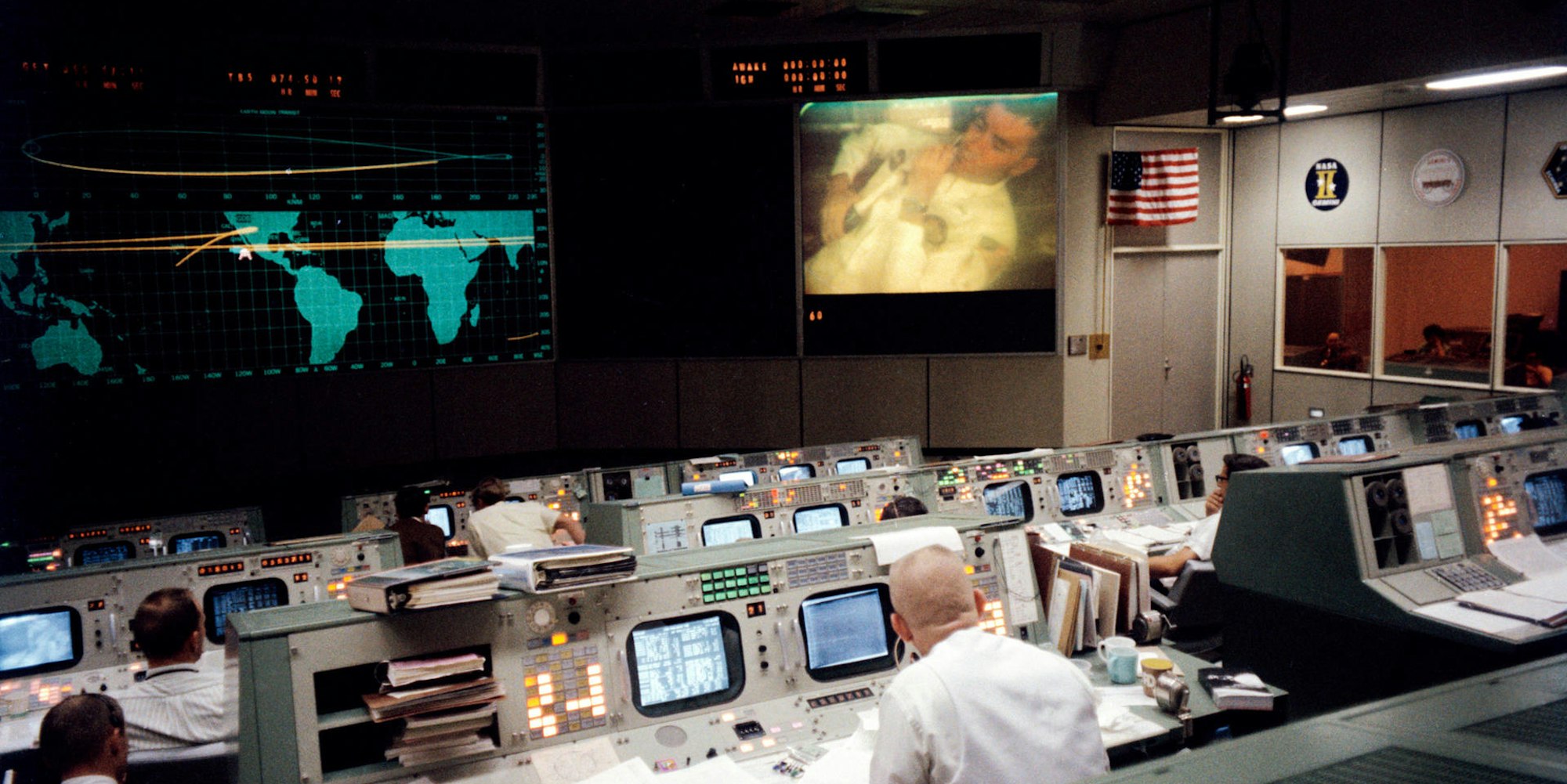 Blick ins Kontrollzentrum der Apollo-13-Mission in Houston