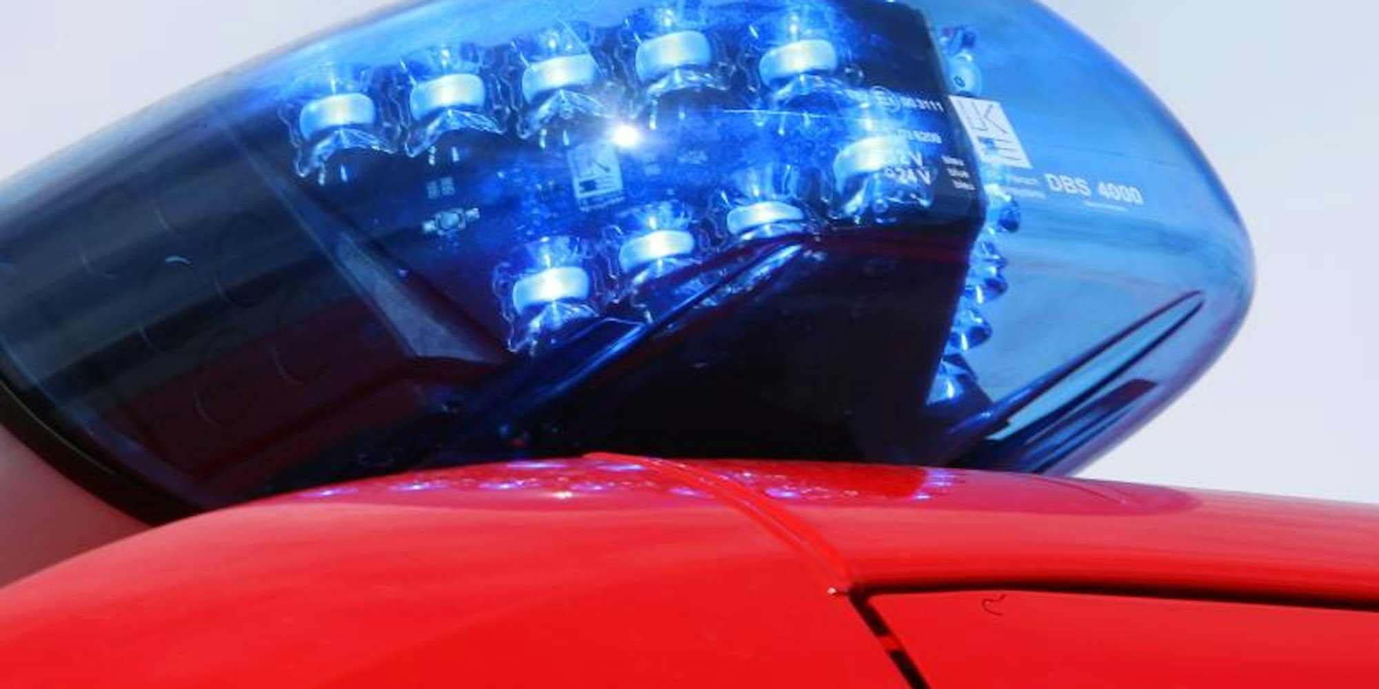Ein Blaulicht leuchtet auf einem Einsatzwagen der Feuerwehr. (Symbolbild)