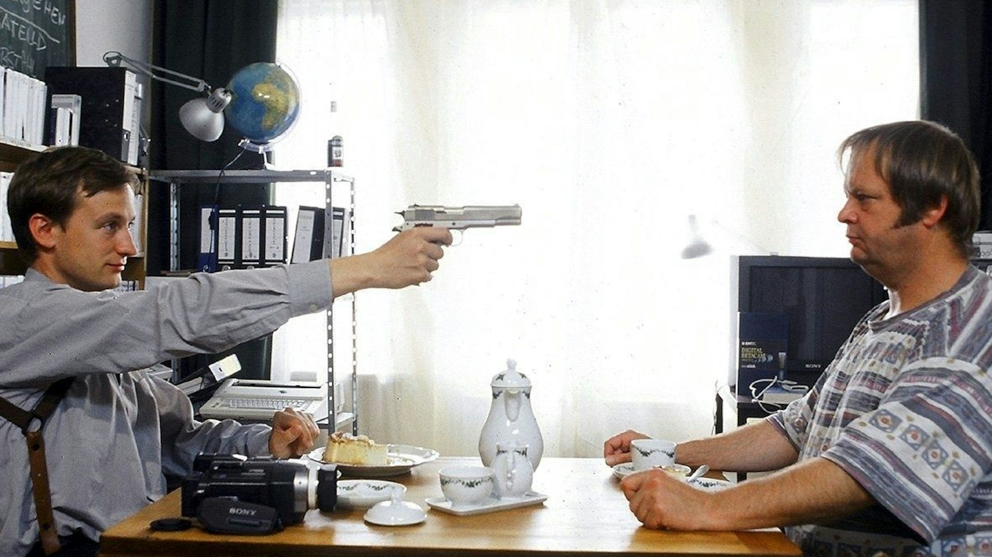 Szene aus dem deutschen Berlinale-Beitrag „Muxmäuschenstill“ (2004). Jan Henrik Stahlberg (l.) wurde damit unter anderem dreimal für den Deutschen Filmpreis nominiert.