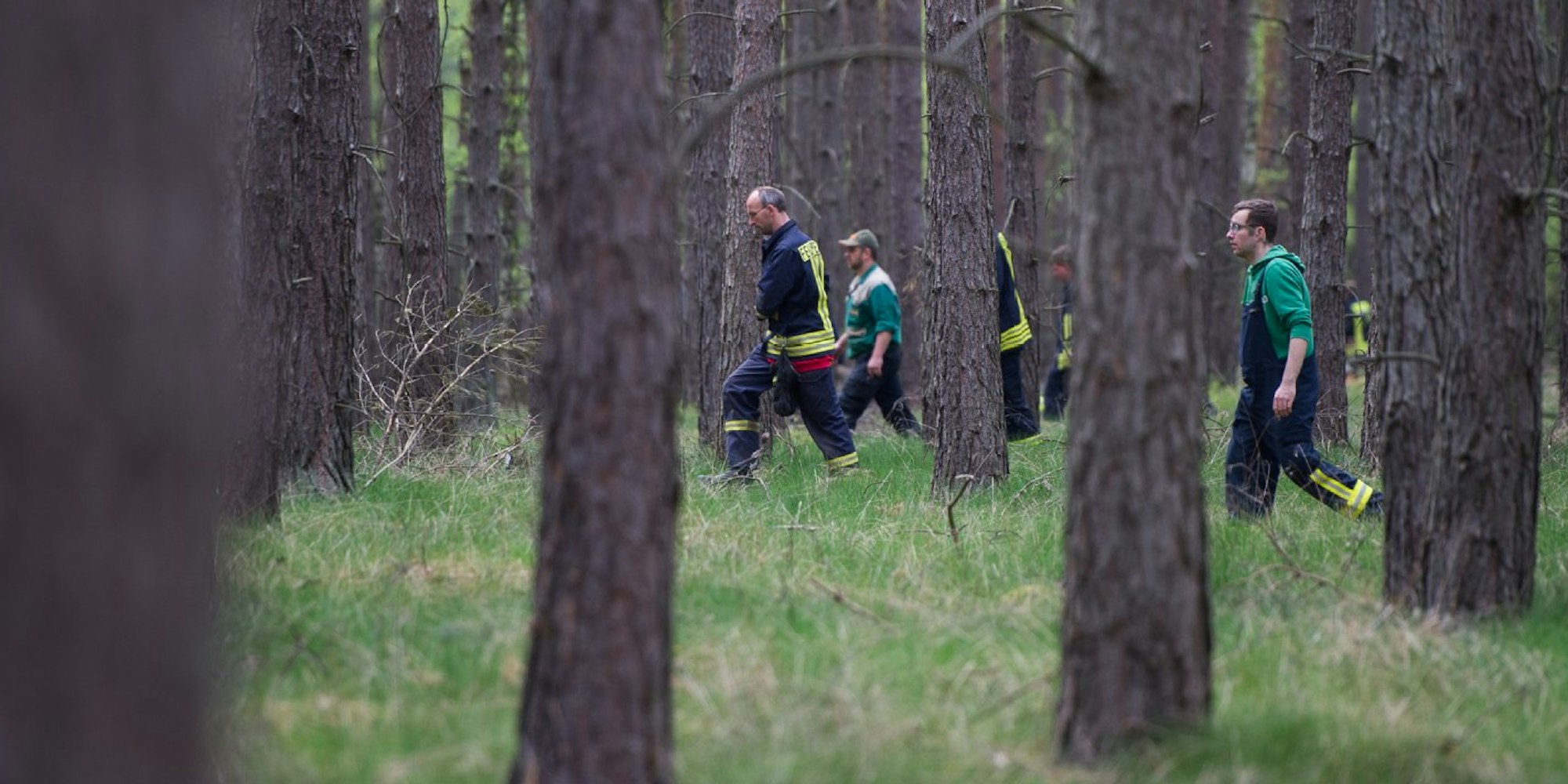 Feuerwehrleute suchen in einem Waldgebiet bei Wilhelmshof, einem Ortsteil von Stendal (Sachsen-Anhalt) nach der vermissten Inga.