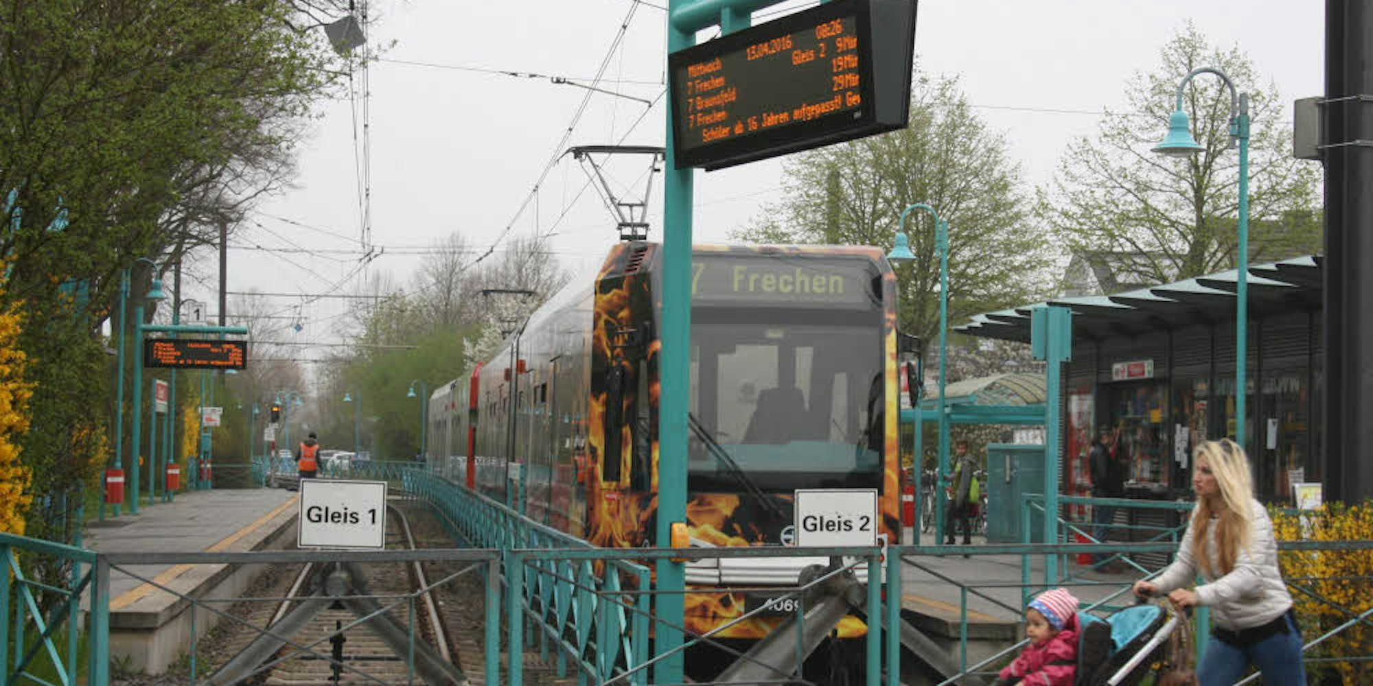In Porz-Zündorf endet die Kölner Stadtbahnlinie 7. Hier könnte der Anschluss zu einer neuen Verbindung Richtung Bonn entstehen, die nach Auffassung von Verkehrsplaner großes Fahrgast-Potenzial hätte.