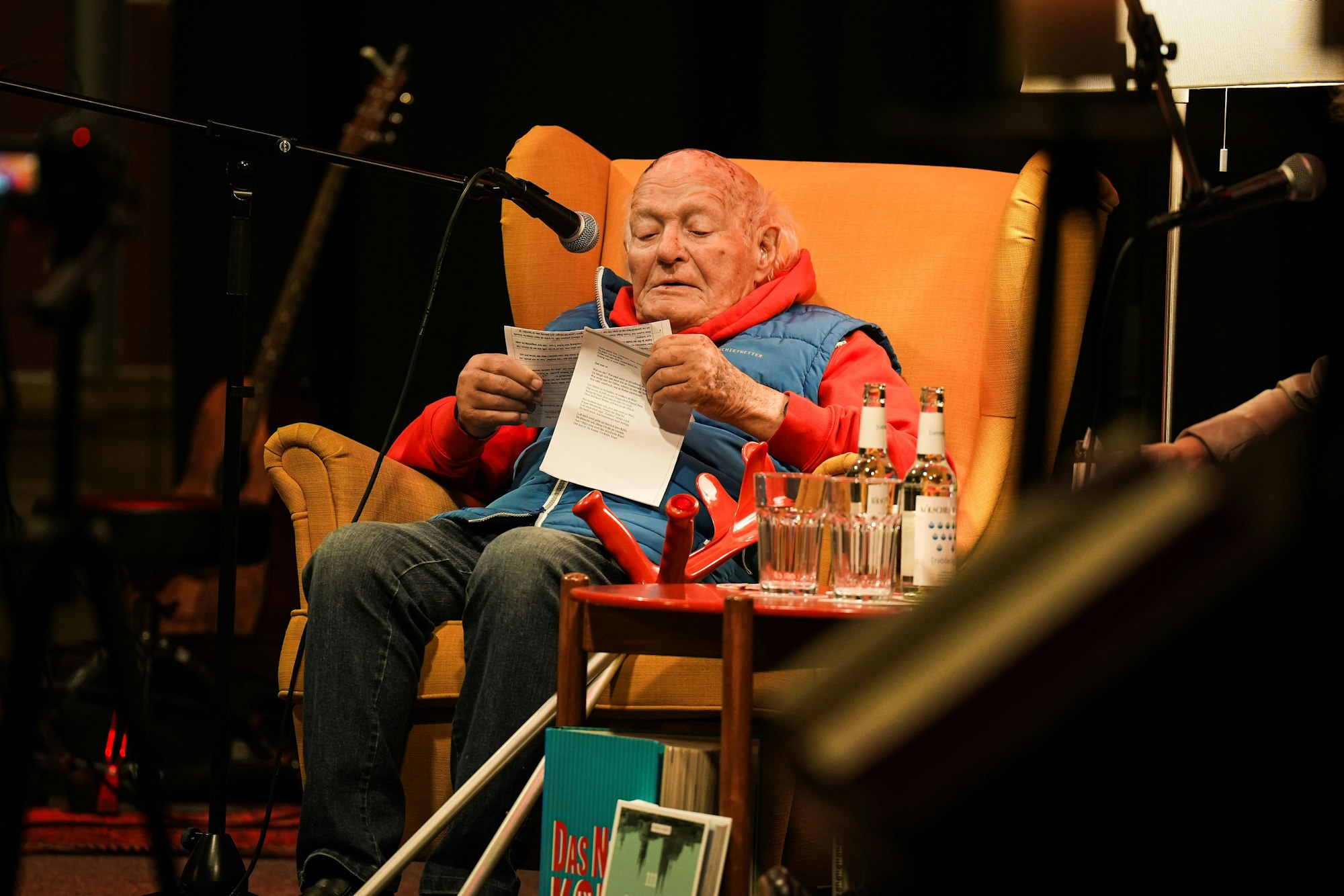 Kölns ältester Podcaster Hermann Hertling bei der Aufzeichnung seines Beitrags zum Dritten Kölner Podcasttag