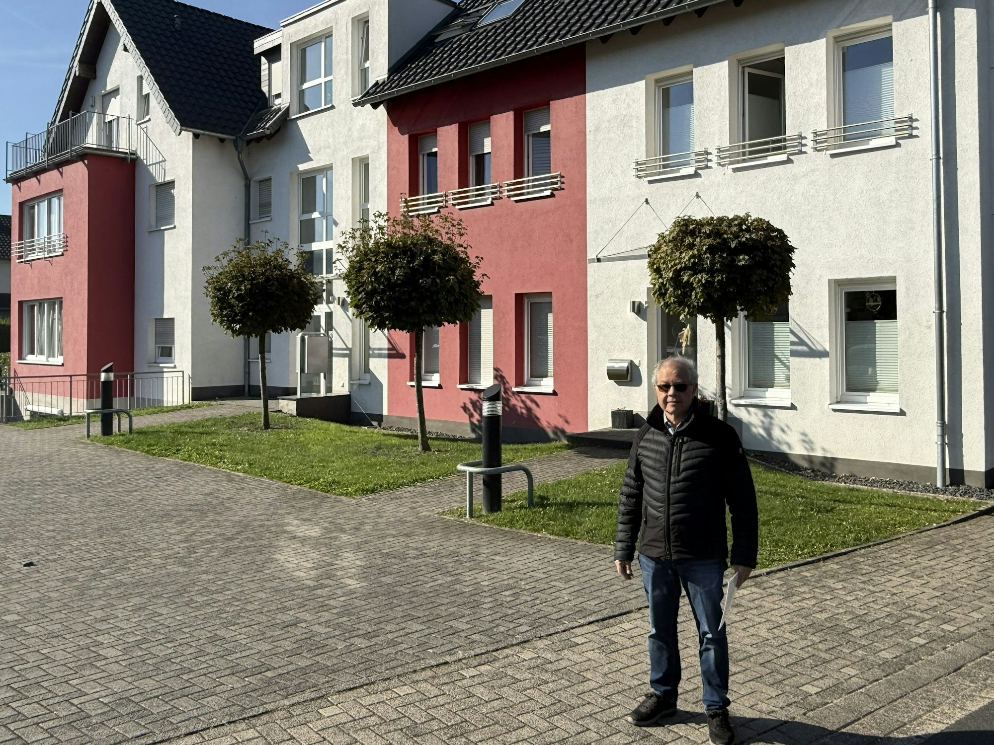 Gerd Albus vor den Neubauten auf dem Gelände in Heide, das früher der "Privaten Sozialen Mission" gehörte