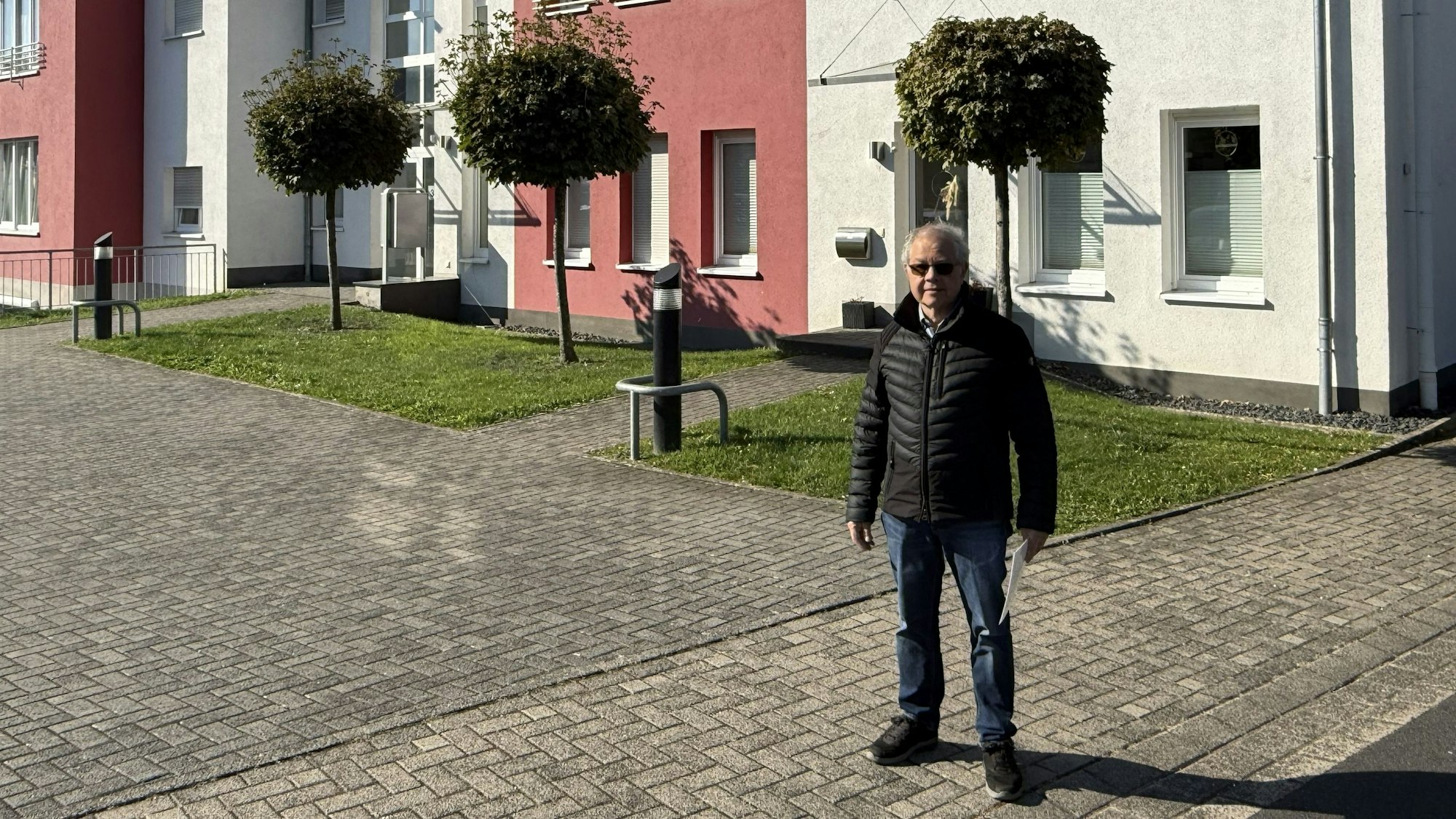 Gerd Albus vor den Neubauten auf dem Gelände in Heide, das früher der „Privaten Sozialen Mission“ gehörte.