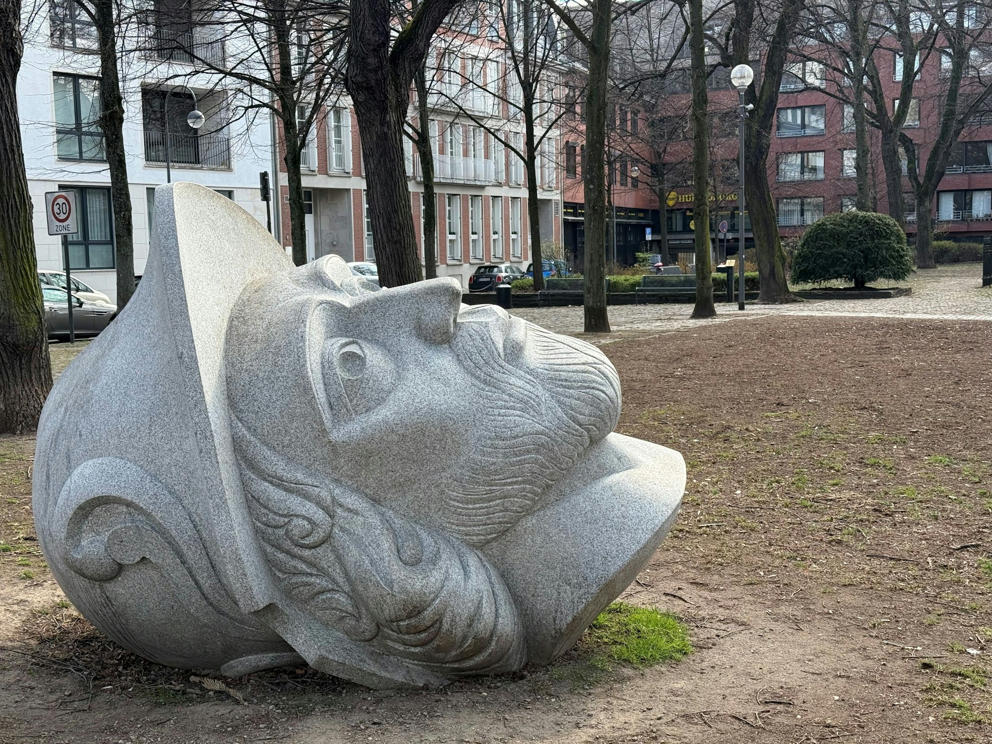 Auf dem Platz vor St.Gereon findet man ein Kunstwerk des Bildhauers Iskender Yediler, das den abgeschlagenen Kopf des Stadtpatron darstellen soll