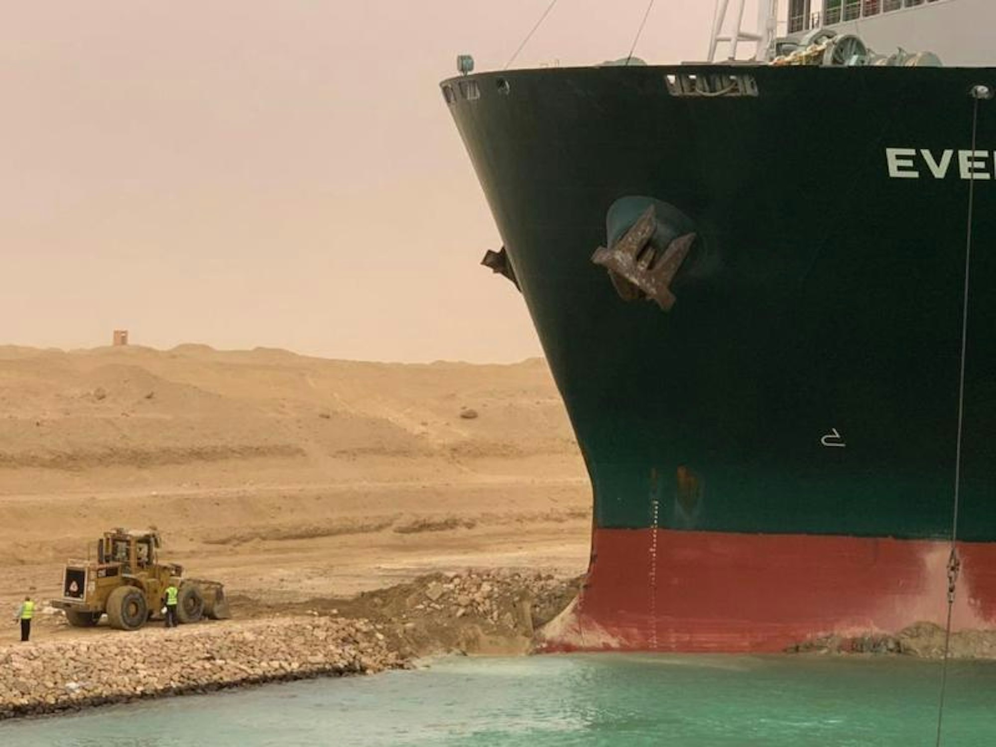 Auf Grund gelaufenContainerschiff blockiert Suezkanal