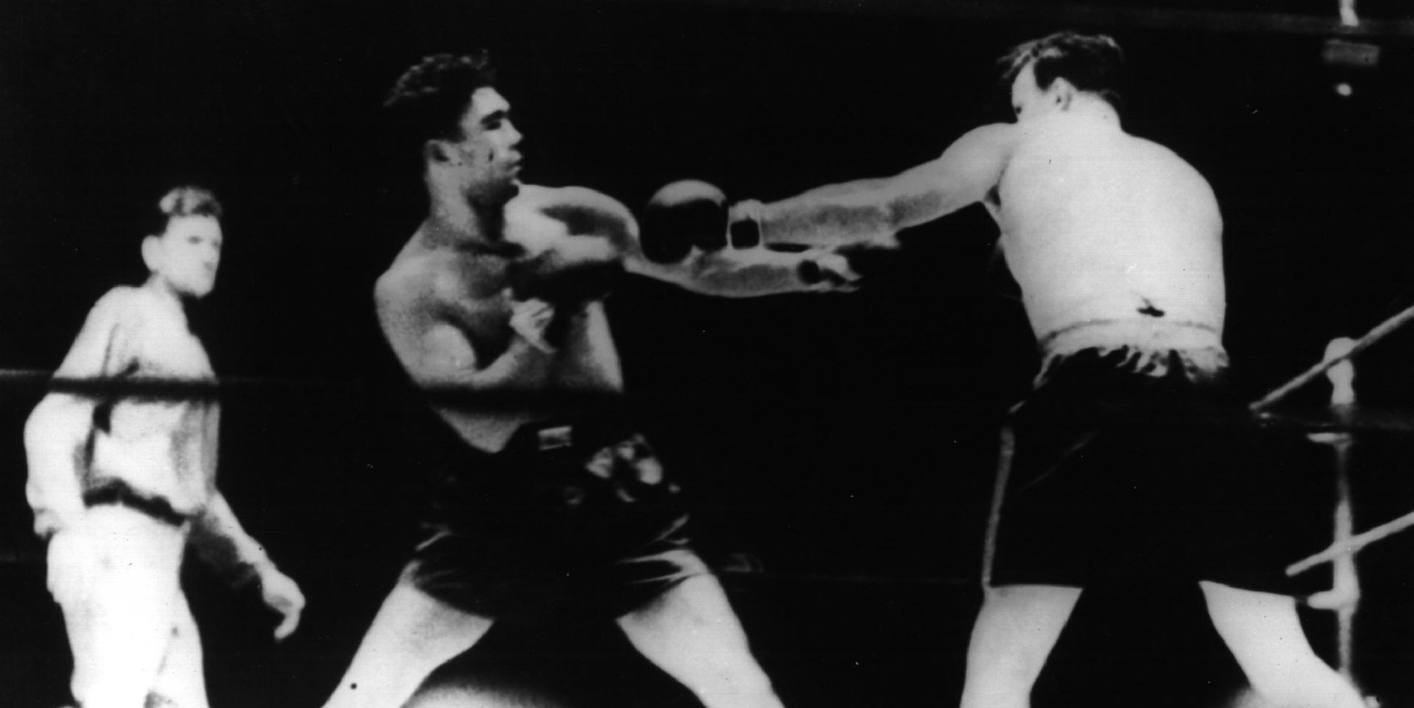 12. Juni 1930: Max Schmeling (l.) besiegt seinen US-Gegner Joe Sharkey in New York.