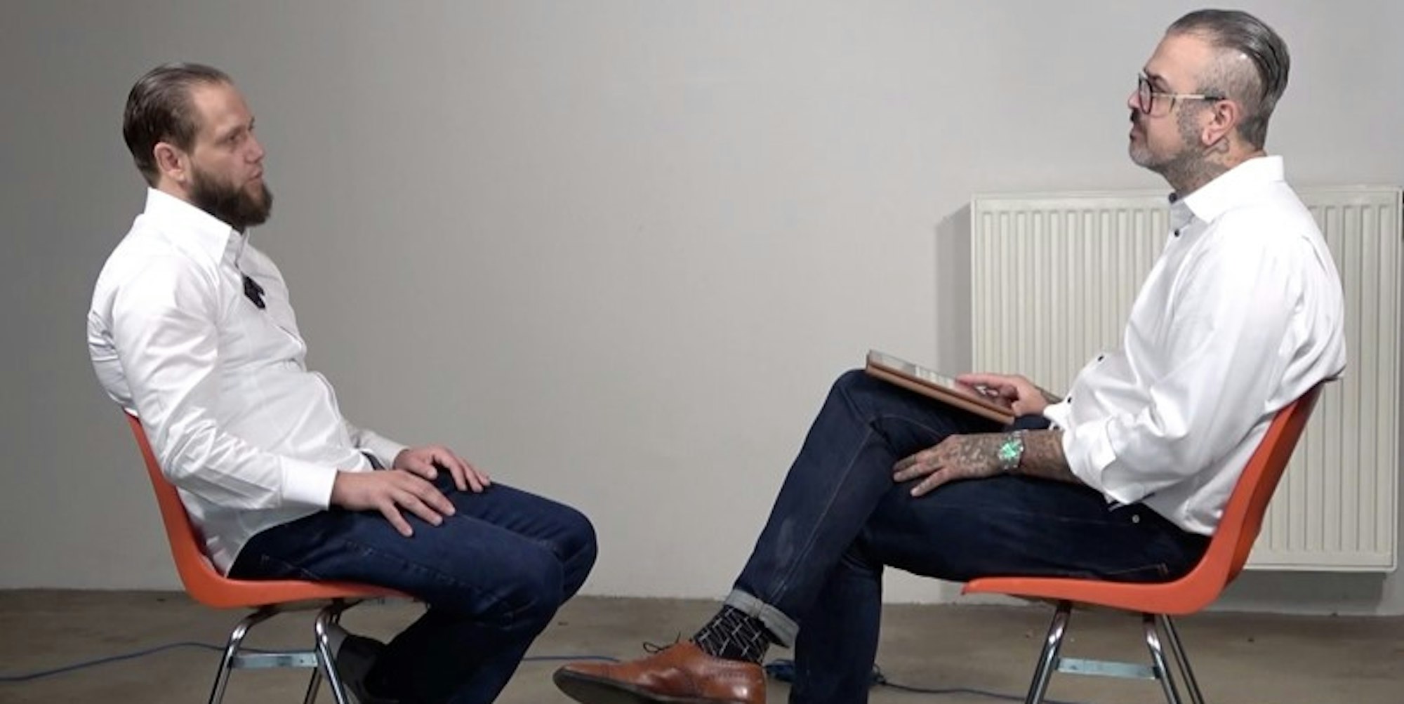 Das Interview mit Sven Lau (l.) führte Sascha Bisley im nüchternen Ambiente einer alten Fabrikhalle in der Nähe von Dortmund.