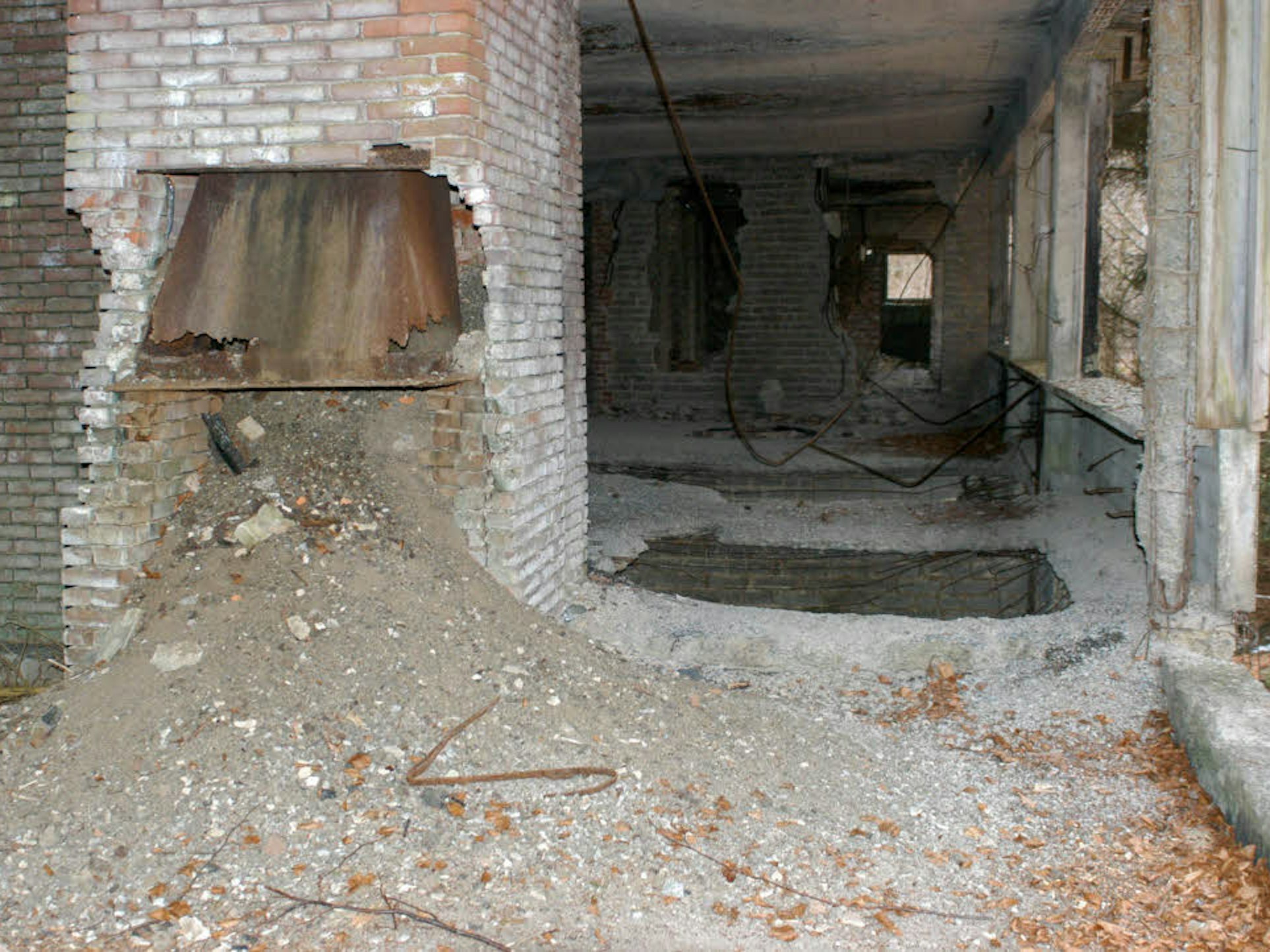 Der verrottete Kamin ist auch heute noch zu erkennen.