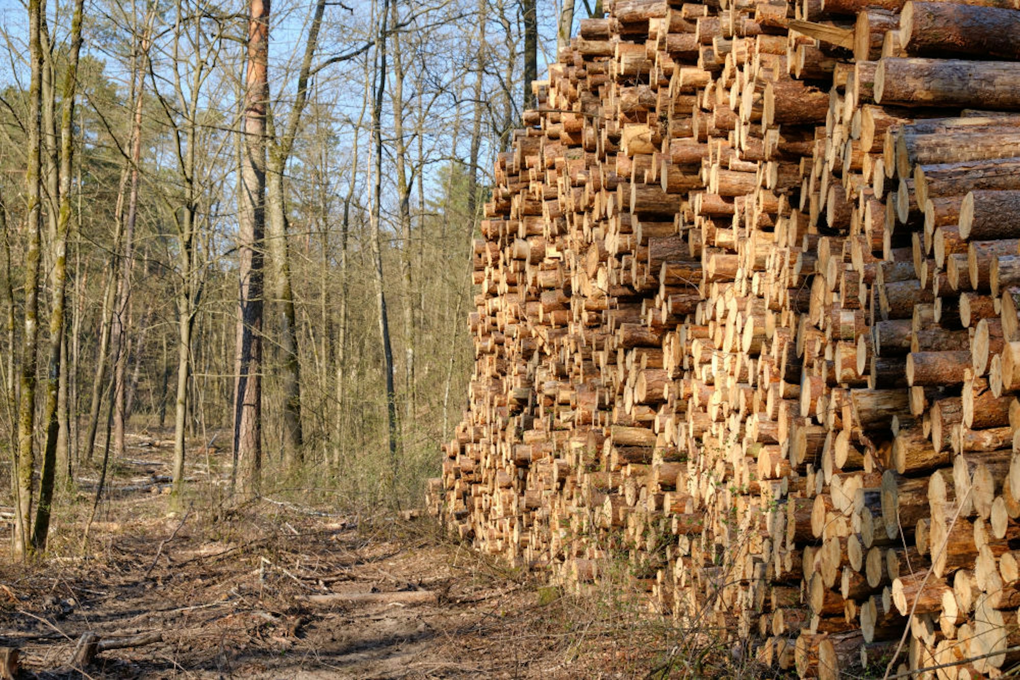 Tonnenweise Holz, der Preis für Fichten ist um zwei Drittel auf 30 bis 40 Euro gefallen.