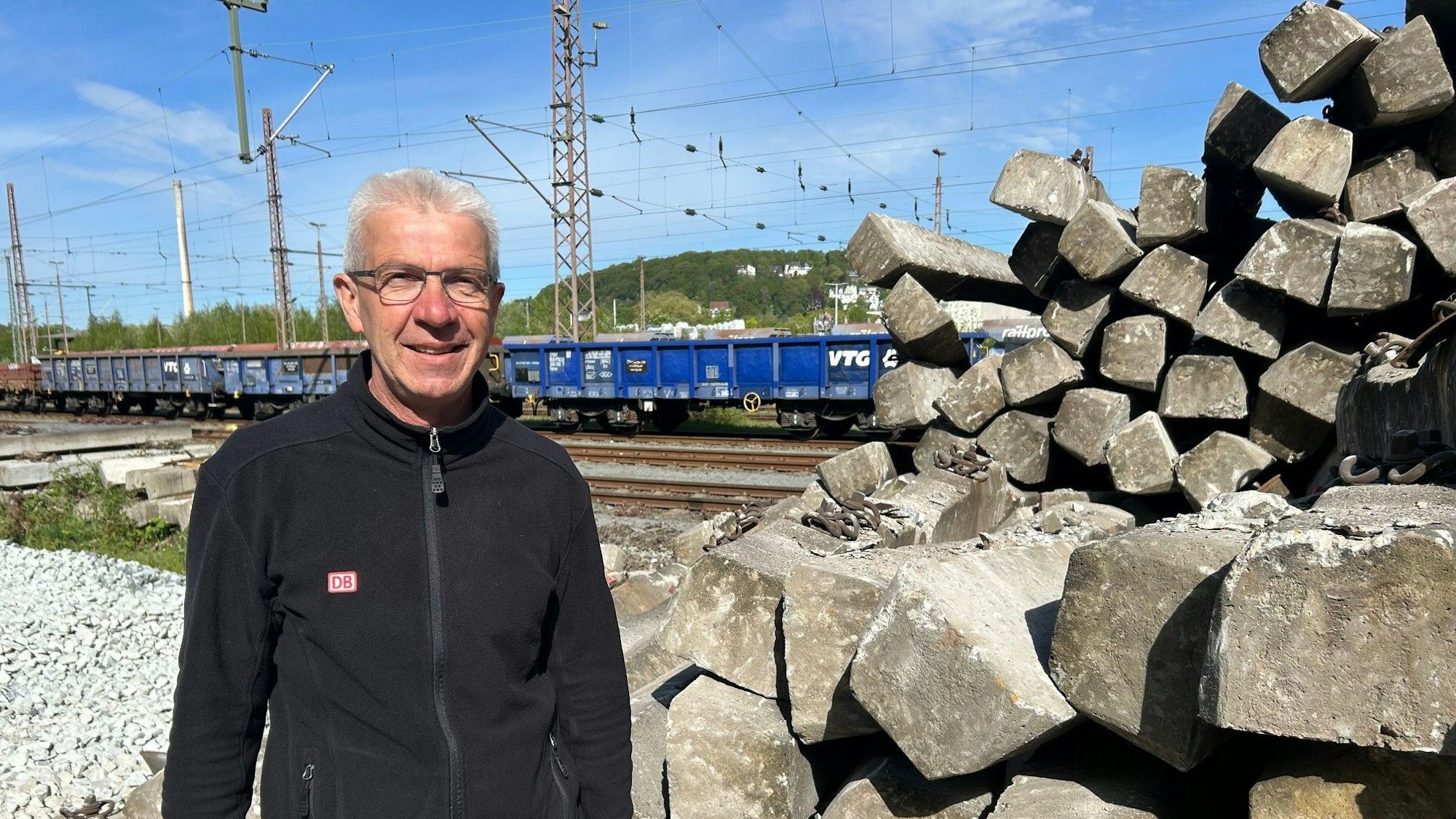 Vor dem Baubüro-Container auf dem Bahngelände in Wuppertal-Steinbeck, ein paar hundert Meter vom Hauptbahnhof entfernt, stapeln sich die Arbeitsnachweise der Bautrupps: Hunderte alter Betonschwellen, die in mühsamer Handarbeit mit schwerem Gerät von abgefahrenen Gleisen gelöst werden mussten.