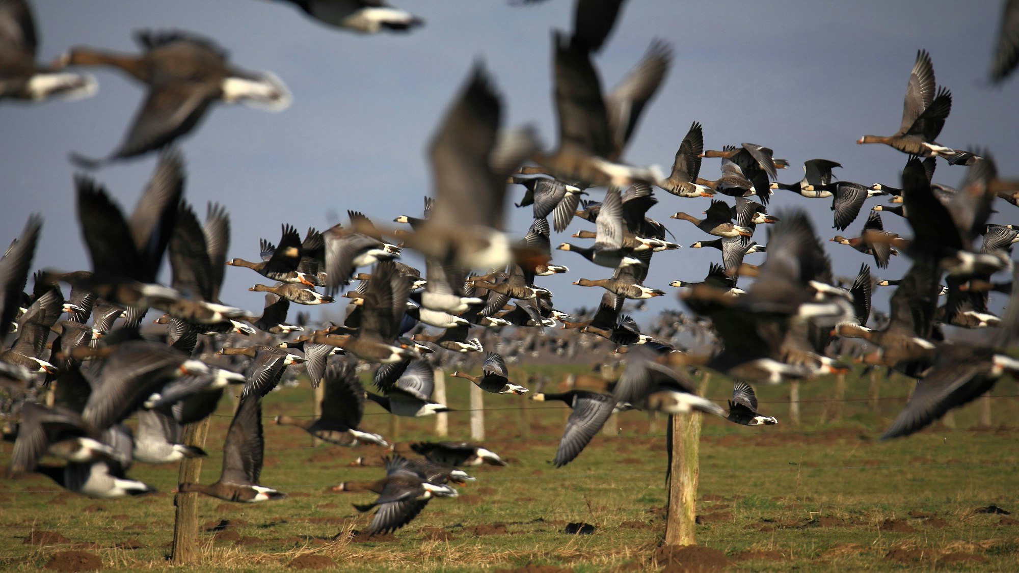 Blassgänse landen im Vogelschutzgebiet Unterer Niederrhein.