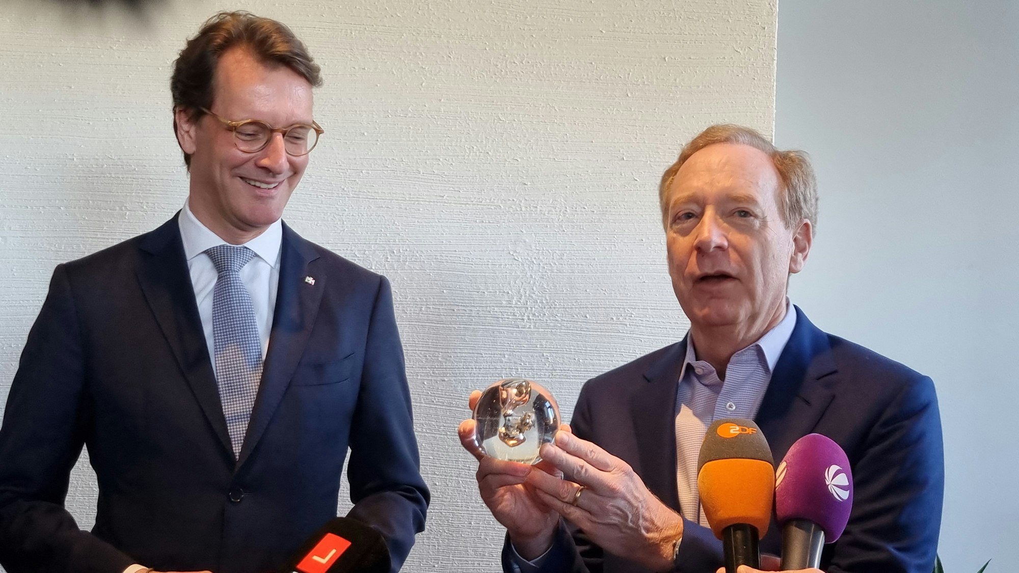 Ministerpräsident Hendrik Wüst jedenfalls scheint am Freitag nach einer langen Reise vor lauter Chancen für sein NRW überwältigt. Er steht neben Microsoft-Mann Brad Smith, spricht über Künstliche Intelligenz und gibt bedeutungsschwanger zu Protokoll: „Die Chancen zu nutzen ist eine riesige Chance in dieser Zeit und aus dieser Chance erwächst auch, das ist meine Überzeugung, die Verpflichtung, diese Chancen zu nutzen.“