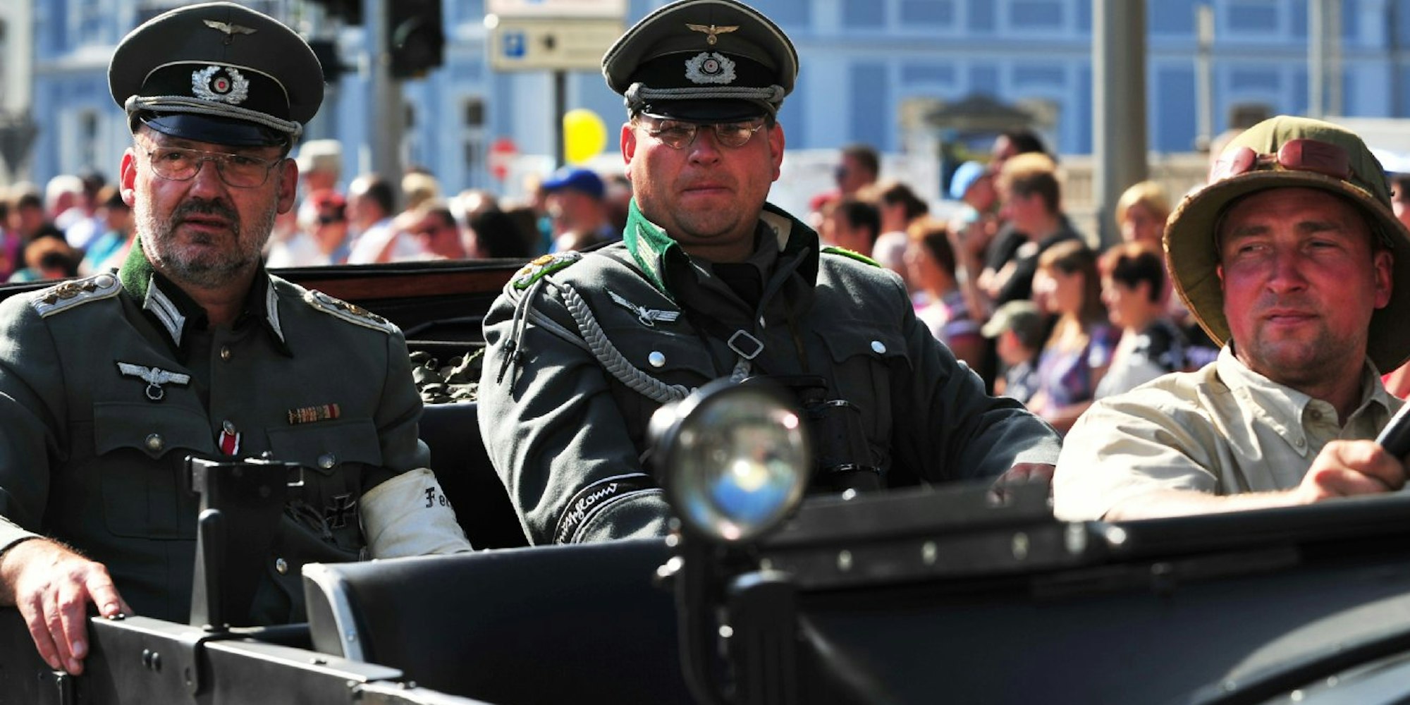 Die Männer präsentierten sich demnach auf dem Fest mit über 300.000 Zuschauern in originalen Uniformen, Autos und Motorrädern der Wehrmacht und stellten unter anderem einen Wegweiser mit der Aufschrift „Moskau“ auf. Zudem zeigten sie kleine militärische Übungen.
