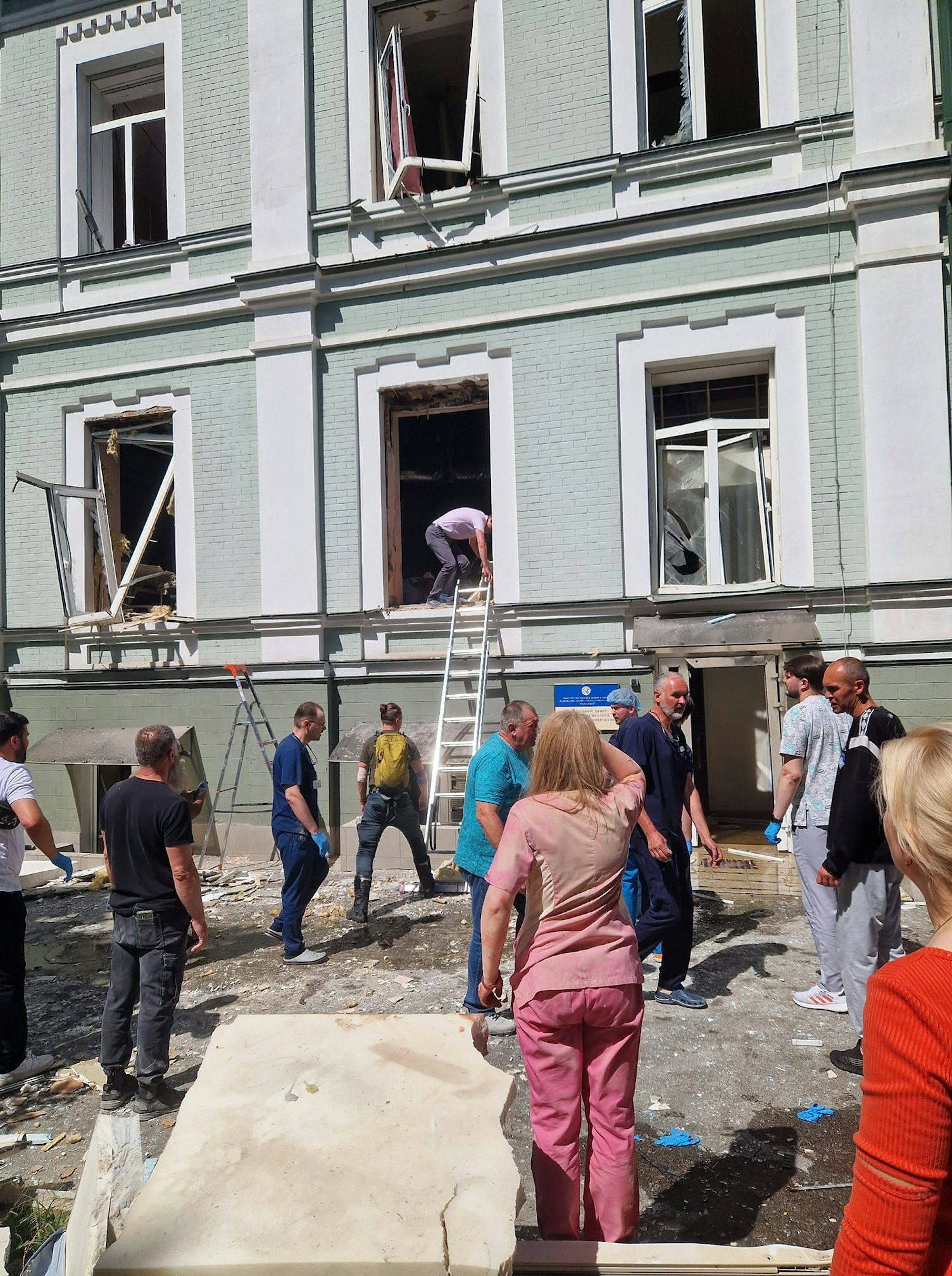 Das in Teilen zerstörte Okhmatdyt Kinderkrankenhaus in Kiew nach einem russischen Raketenangriff vom 8. Juli
