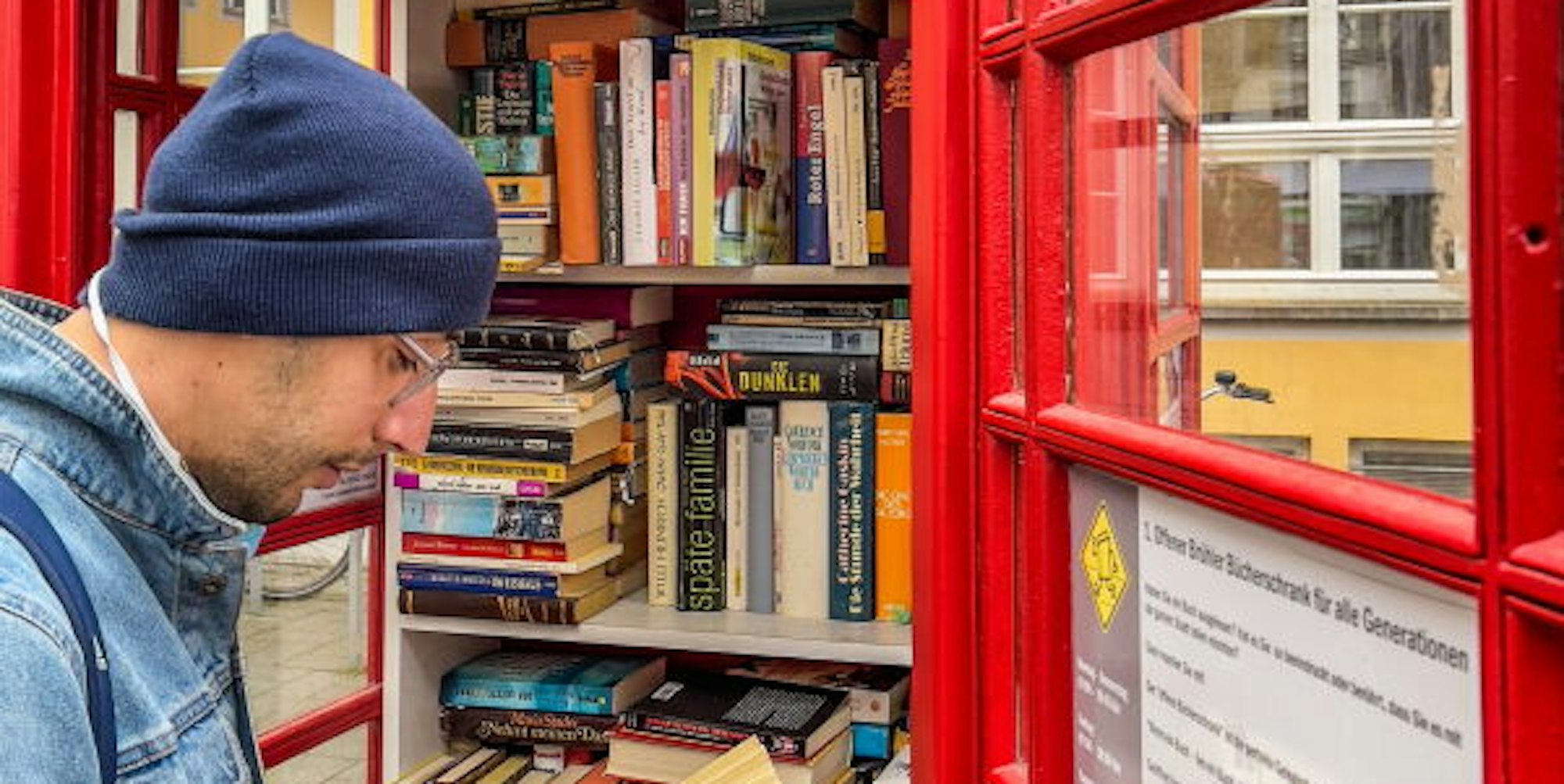Ghersi Saїd stöbert gerne im Bücherschrank in Brühl.