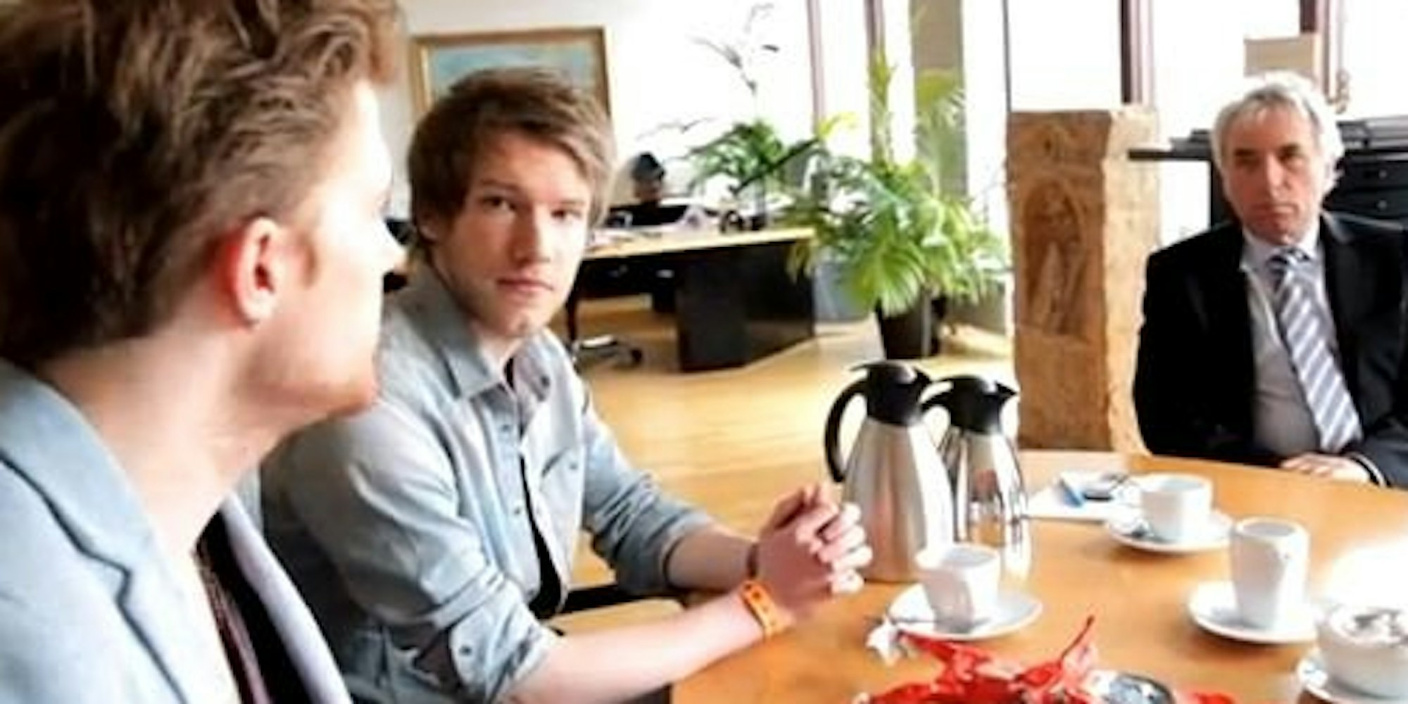 Die Youtuber von Ape Crime bei Oberbürgermeister Jürgen Roters im Büro.