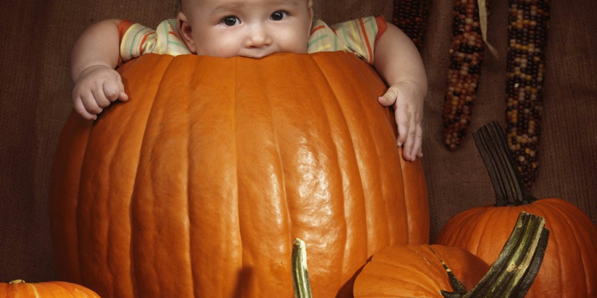 Eine andere Möglichkeit ist, das Kind einfach orange-grün anzuziehen und ihm eine Kürbismütze aufzusetzen. Eine Strickanleitung für eine Kürbismütze findet ihr hier.