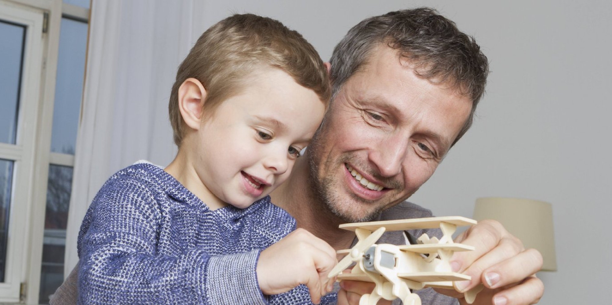 Hat der Sohnemann zusammen mit Papa ein Flugzeug gebastelt, reicht dem Kleinen oft anerkennende Aufmerksamkeit statt übermäßiges Lob.