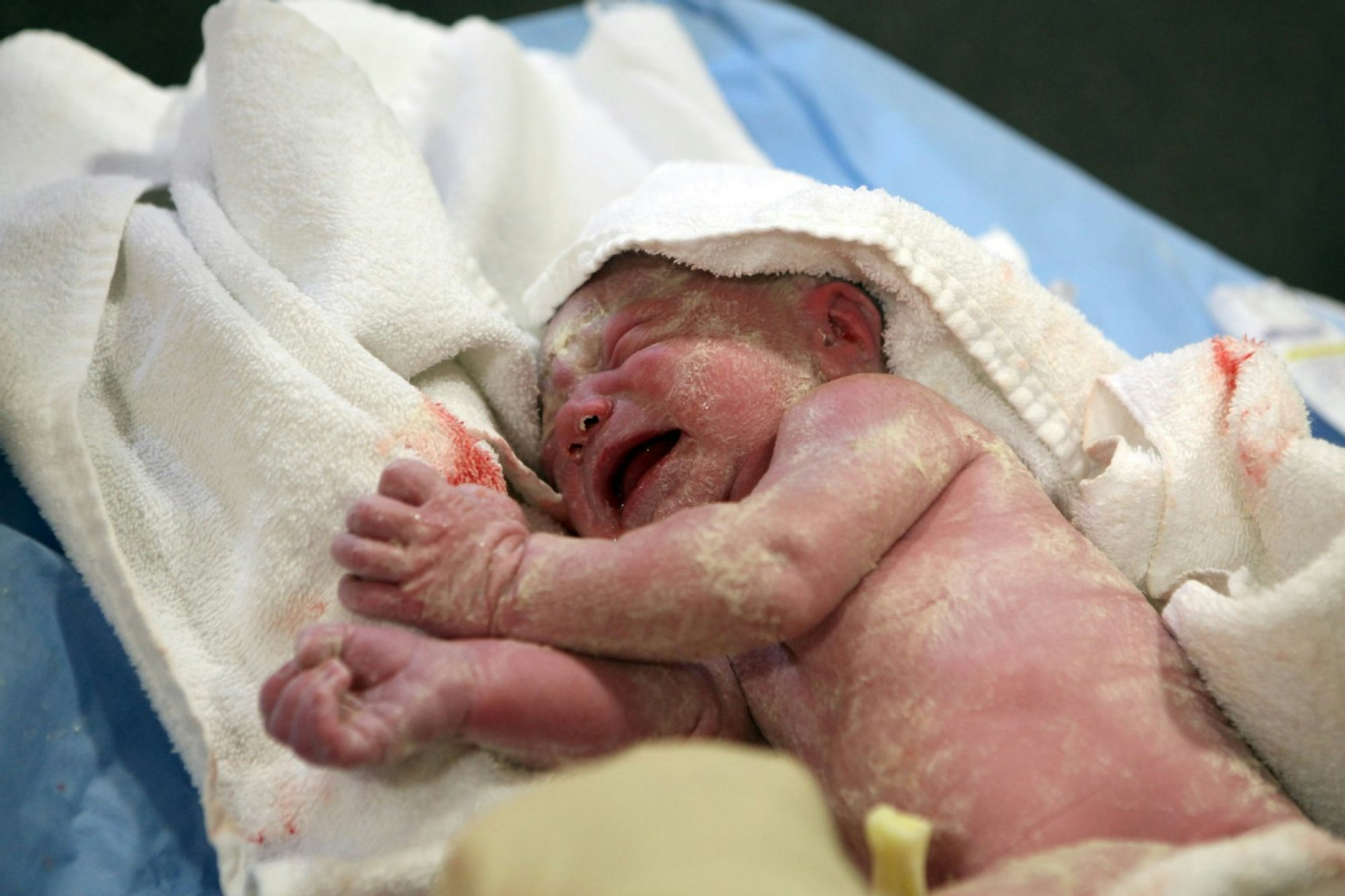 Der weiße Film am Körper des Neugeborenen sollte einen nicht irritieren. Die Käseschmiere schützt das Neugeborene vor Wärmeverlust.
