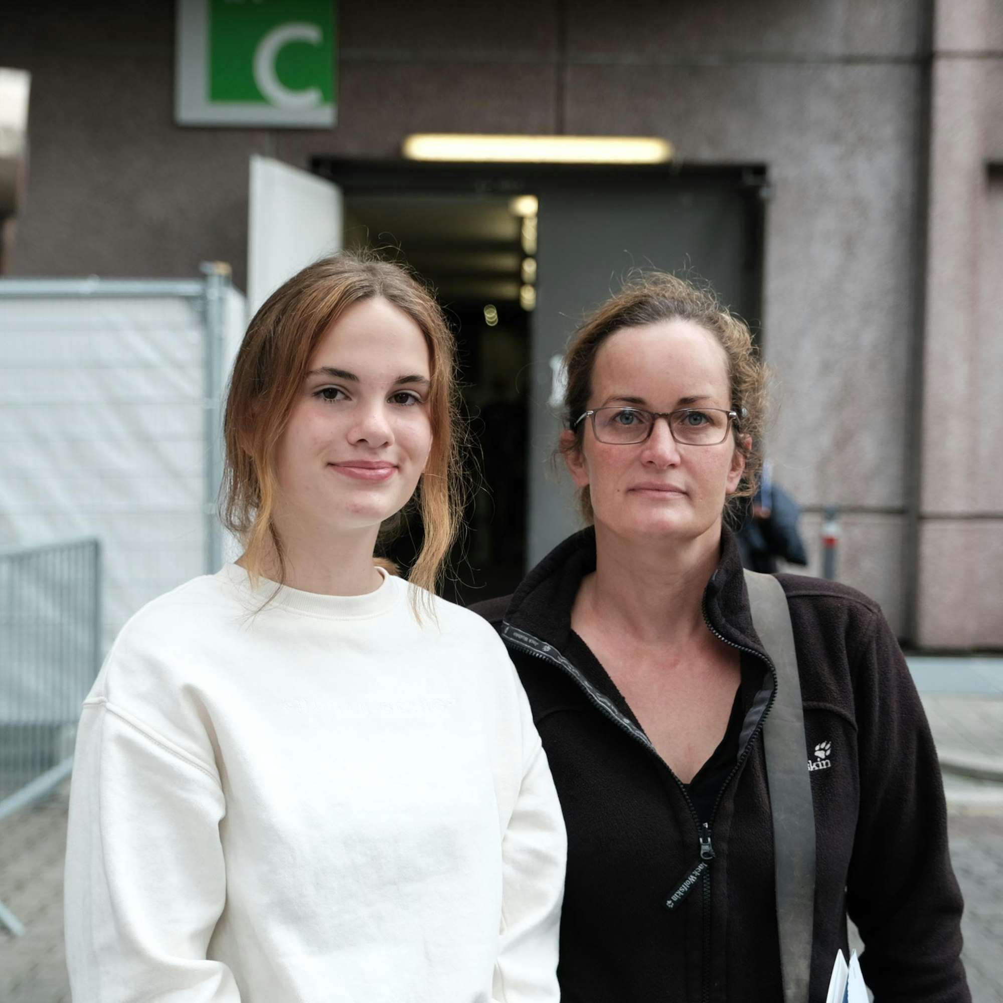 Catja (l.) und Claudia Wollenweber aus Pesch am Impfzentrum