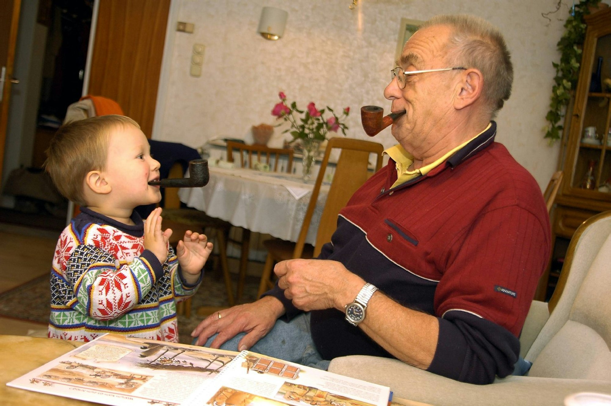 Mit Opa Pfeife spielen – heute pädagogisch undenkbar.