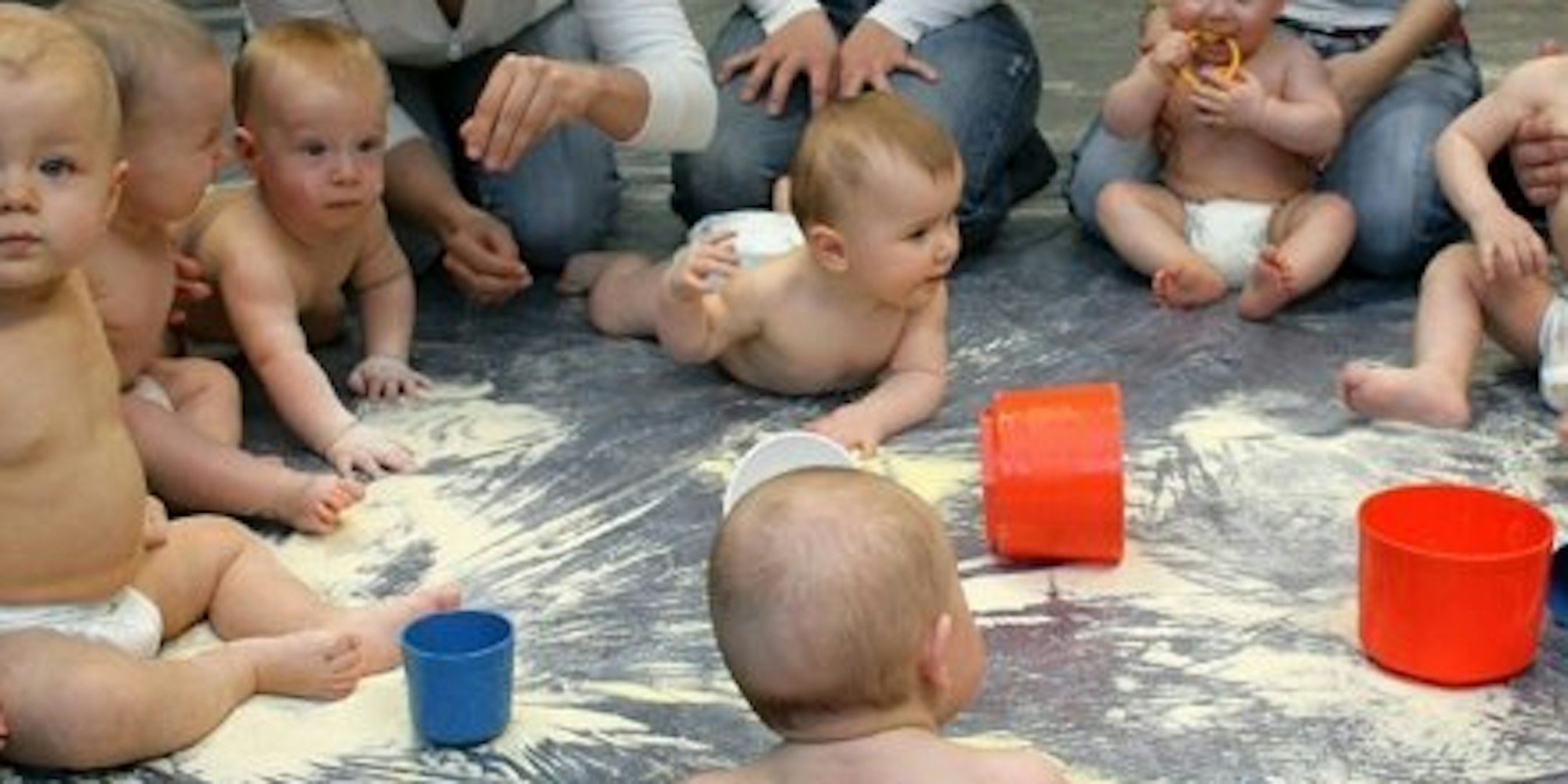 Draußen liegt Schnee, die Temperaturen bewegen sich um den Gefrierpunkt, aber im Familienzimmer im Hamburger Stadtteil Uhlenhorst schwitzen acht Mütter in T-Shirts. Zwei Heizlüfter blasen warme Luft in den mit Gymnastikmatten ausgelegten Raum, darauf krabbeln acht nackte Babys. Sie nehmen mit ihren Müttern teil an einem Pekip-Kurs. Die Abkürzung steht für Prager Eltern-Kind-Programm. Dabei handelt es sich um Kurse, in denen die körperliche und geistige Entwicklung von Säuglingen unterstützt werden soll.
