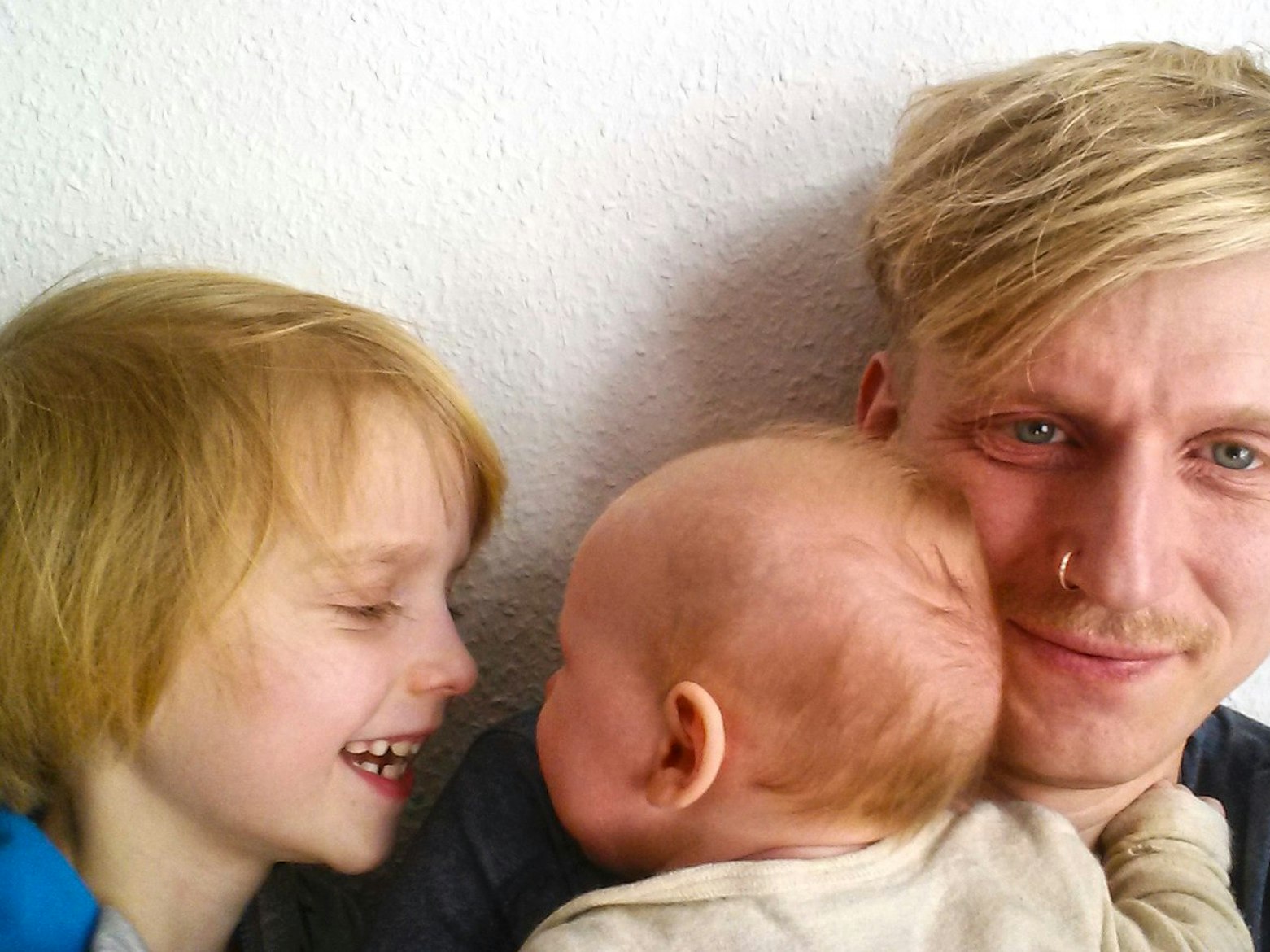 König bekam seine erste Tochter Fritzi mit einer Partnerin Ende 20. Er übernahm den Großteil der Erziehung. Dann ging die Liebe in die Brüche. Aber König wollte noch ein Kind. Er traf Marie, die lesbisch ist. Als Freunde und Co-Eltern bekamen beide Ende 2014 Lynn. Ziemlich kompliziert das Ganze. Manchmal stöhnt sogar König. Um dann zu sagen: „Ich habe eine grandiose Familie.“