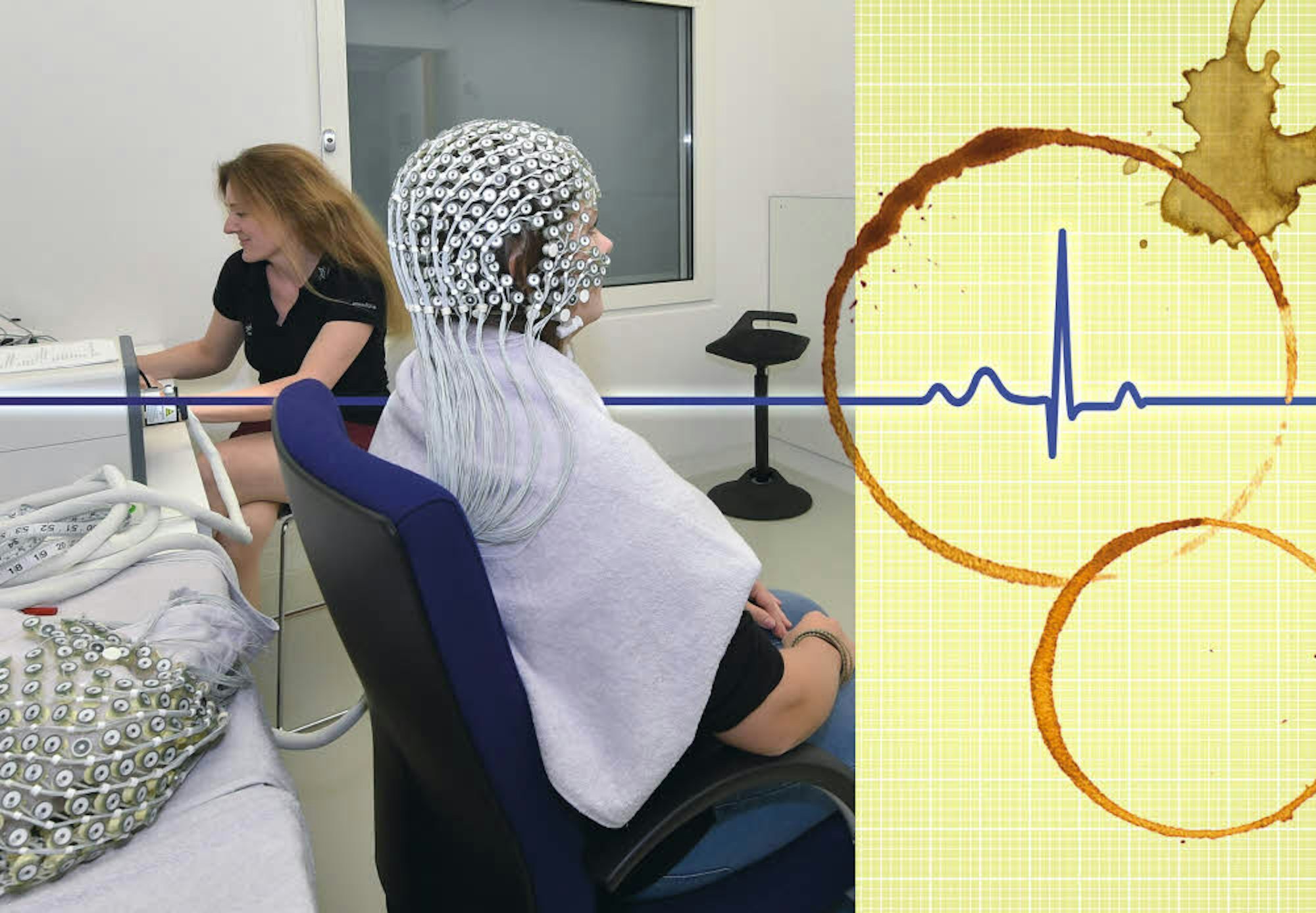 „Wenn ein Kaffeetrinker für ein paar Tage mal keinen Kaffee trinkt, dann fühlt er sich am Anfang nicht wohl“, sagt die Wissenschaftlerin vom Deutschen Zentrum für Luft- und Raumfahrt (DLR) in Köln-Porz. Kopfschmerzen und Müdigkeit können die Folge sein. Eva-Maria Elmenhorst untersucht im Schlaflabor des DLR, wie sich Schlafmangel auf die Leistungsfähigkeit auswirkt – und welche Rolle Kaffee dabei spielt. Im Namen der Wissenschaften dürfen dort zurzeit Probanden für die Studie Kaffee trinken. Drei Tassen am Tag, eine exakt abgewogene Menge. Die eine Hälfte der Probanden normalen Kaffee, die andere koffeinfreien.