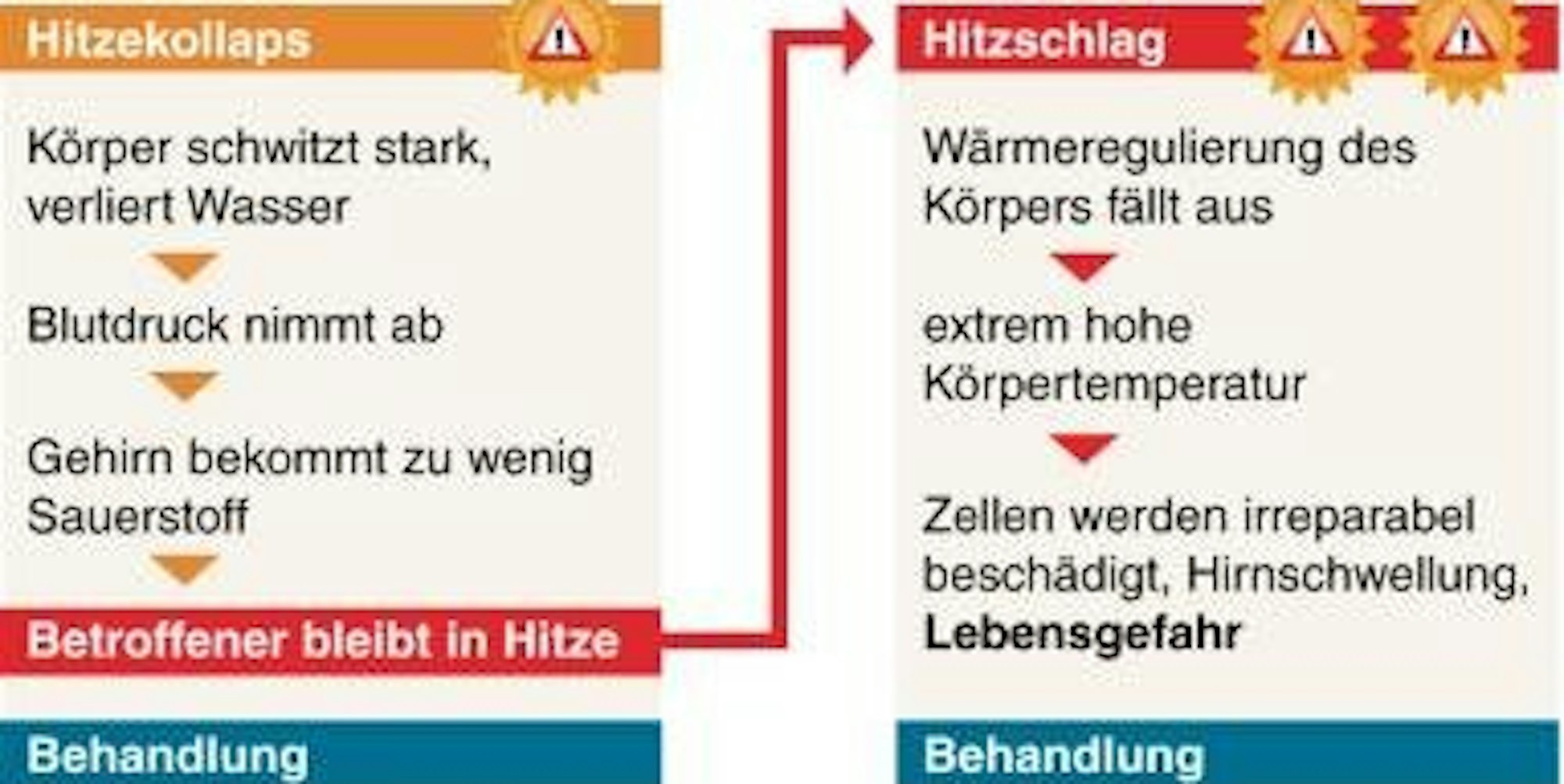 Erklärgrafik zu Hitzekollaps und Hitzschlag