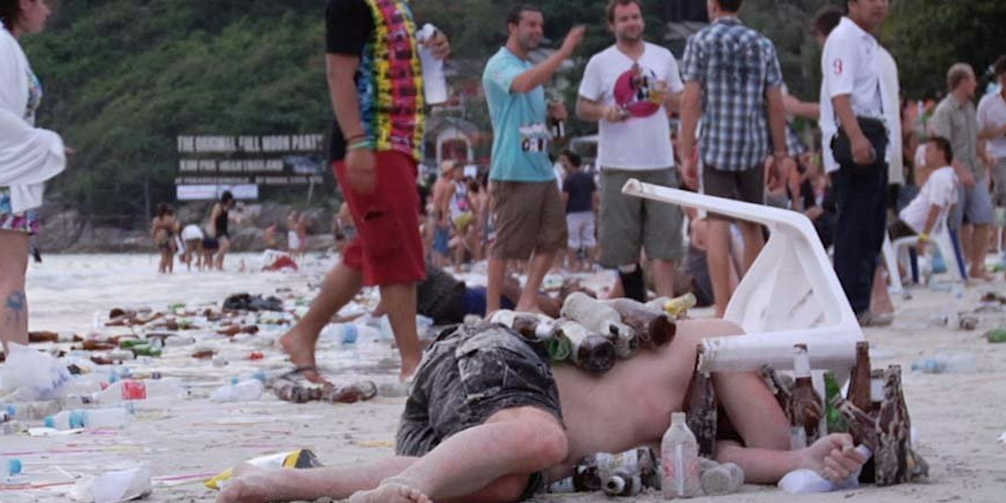 Das zeigt unser Film ganz deutlich. Nehmen Sie nur das Beispiel Thailand: Die Vollmond-Party auf der Insel Koh Pha Ngan ist längst zur Massenveranstaltung geworden. Jeden Monat kommen tausende junge Leute dorthin, saufen wie am Ballermann und feiern eine Nacht lang als gäbe es kein Morgen. Am Tag danach gleicht der Strand einer Müllhalde: übersät mit Strohhalmen, Plastik- und Bierflaschen - und Betrunkenen, die ihren Rausch ausschlafen.