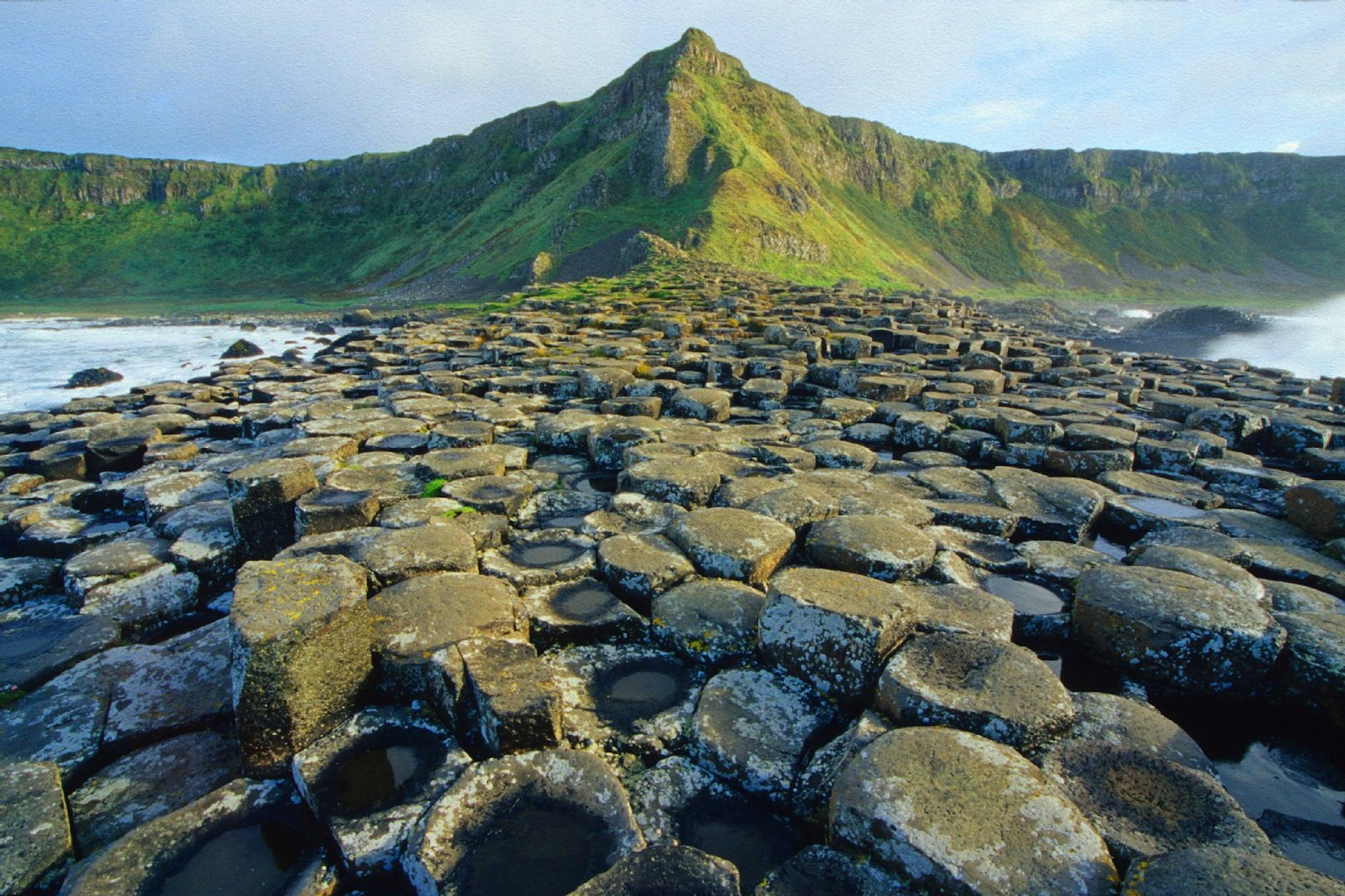 Dass der Giant’s Causeway auf natürliche Weise entstanden sein könnte, konnten sich die Iren früher nicht vorstellen. Eine Riese (Englisch „Giant“) müsse den Damm („Causeway“) aus sechseckigen Basaltsäulen erschaffen haben, glaubten sie. Tatsächlich entstanden die rund 60 Millionen Jahre alten Steingebilde an der nordirischen Küste durch abkühlende Lava. Ihre sechseckige Säulenform bekam der Giant’s Causeway durch Trocknungsrisse, die sich senkrecht zur Lava bildeten. Der Vulkan selbst existiert heute nicht mehr.