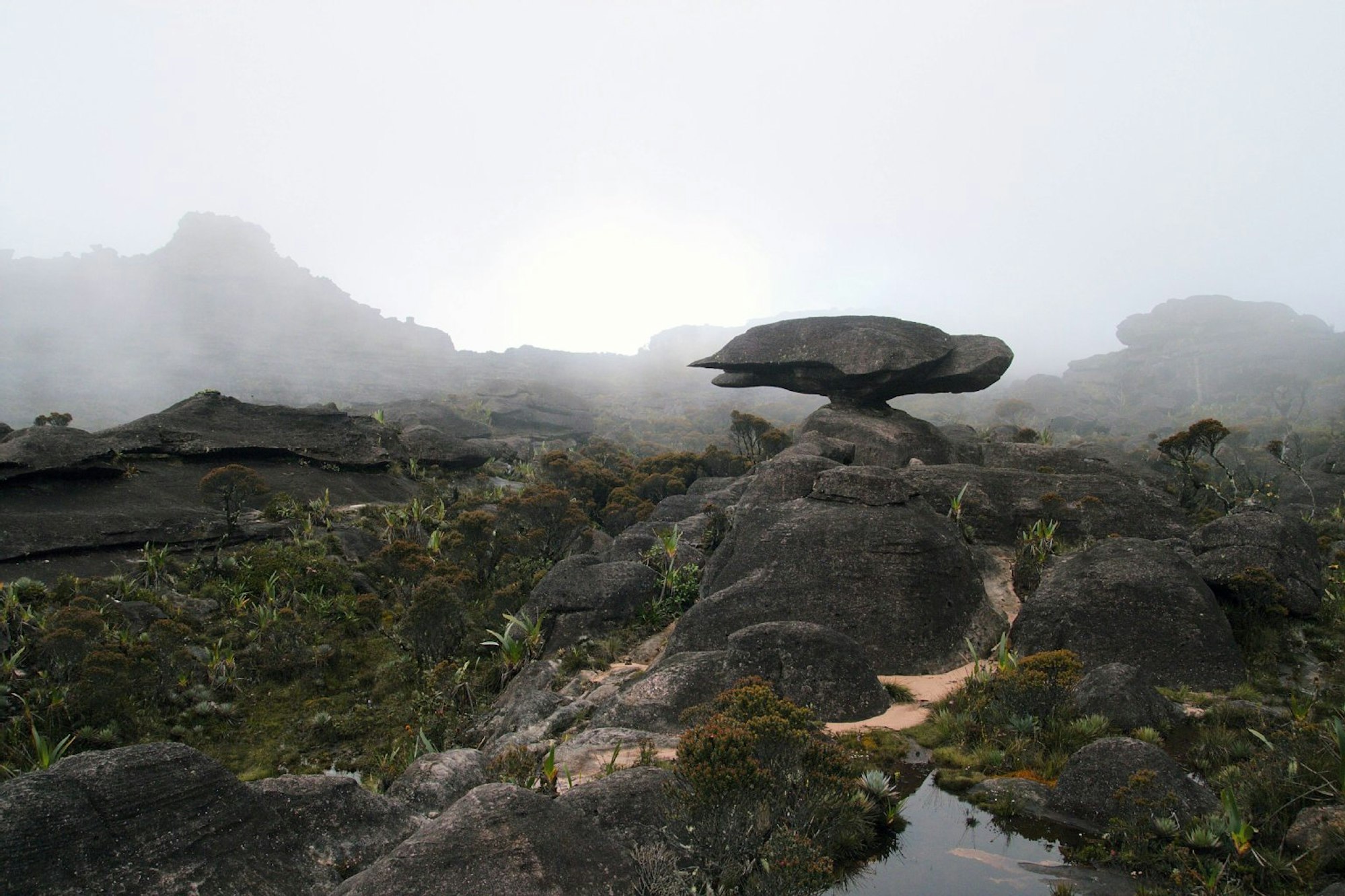 Auf dem durch karge Felsen, kümmerliche Vegetation und neblige Moore geprägten Plateau des Mount Roraima haben sich – abgeschottet von äußeren Einflüssen – eine einzigartige Flora und Fauna entwickelt. Entstanden ist der Tafelberg durch die Erosion der Umgebung: Nur der Berg blieb inselartig stehen. Etwa ein Drittel der auf dem Plateau lebenden Arten sind endemisch, kommen also nur dort vor. Der Zugang zu dem Tafelberg an der Ländergrenze von Guyana, Venezuela und Brasilien ist schwierig: Die Klippen sind steil und 400 Meter hoch. In der Sprache der Ureinwohner bedeutet „Tepui“ (Tafelberg), „Haus der Götter“.