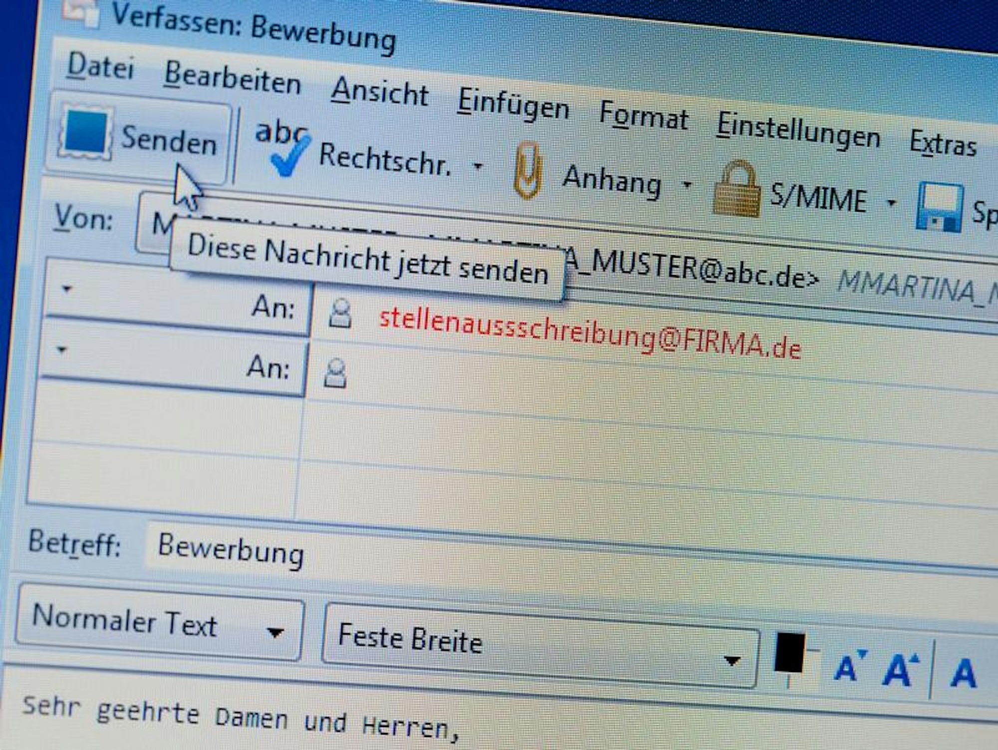 Manche Bewerber kopieren das Anschreiben direkt in ihre E-Mail. Besser ist, es im Anhang mitzuschicken. Denn viele Personaler lassen sich Bewerbungen ausdrucken: Kopieren Jobsuchende aber ihr Anschreiben direkt in die Mail, wird es beim Ausdruck schnell vergessen. Stattdessen schreiben Bewerber im E-Mail-Fenster am besten nur ein oder zwei Zeilen, in denen sie auf die Bewerbungsunterlagen im Anhang verweisen.