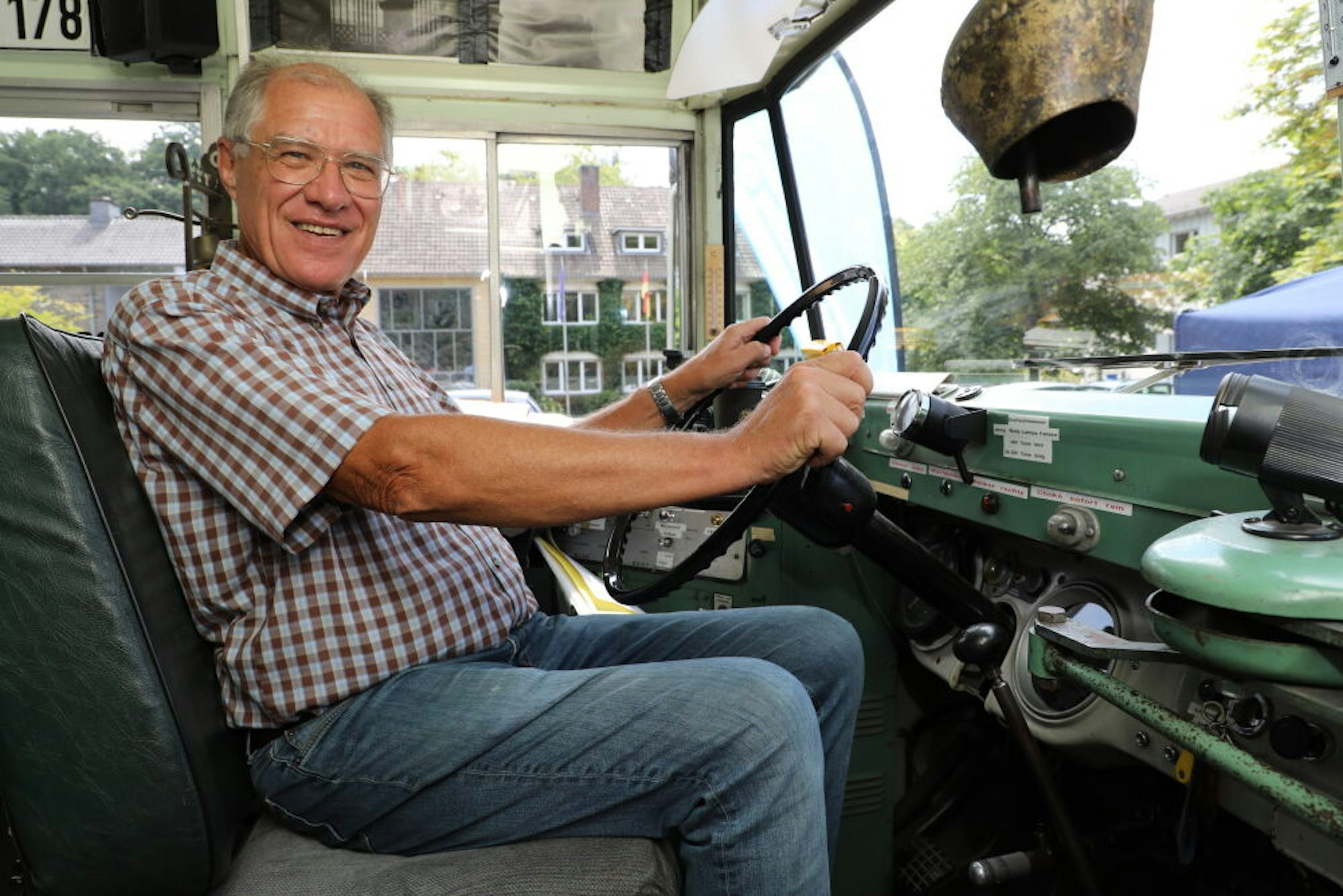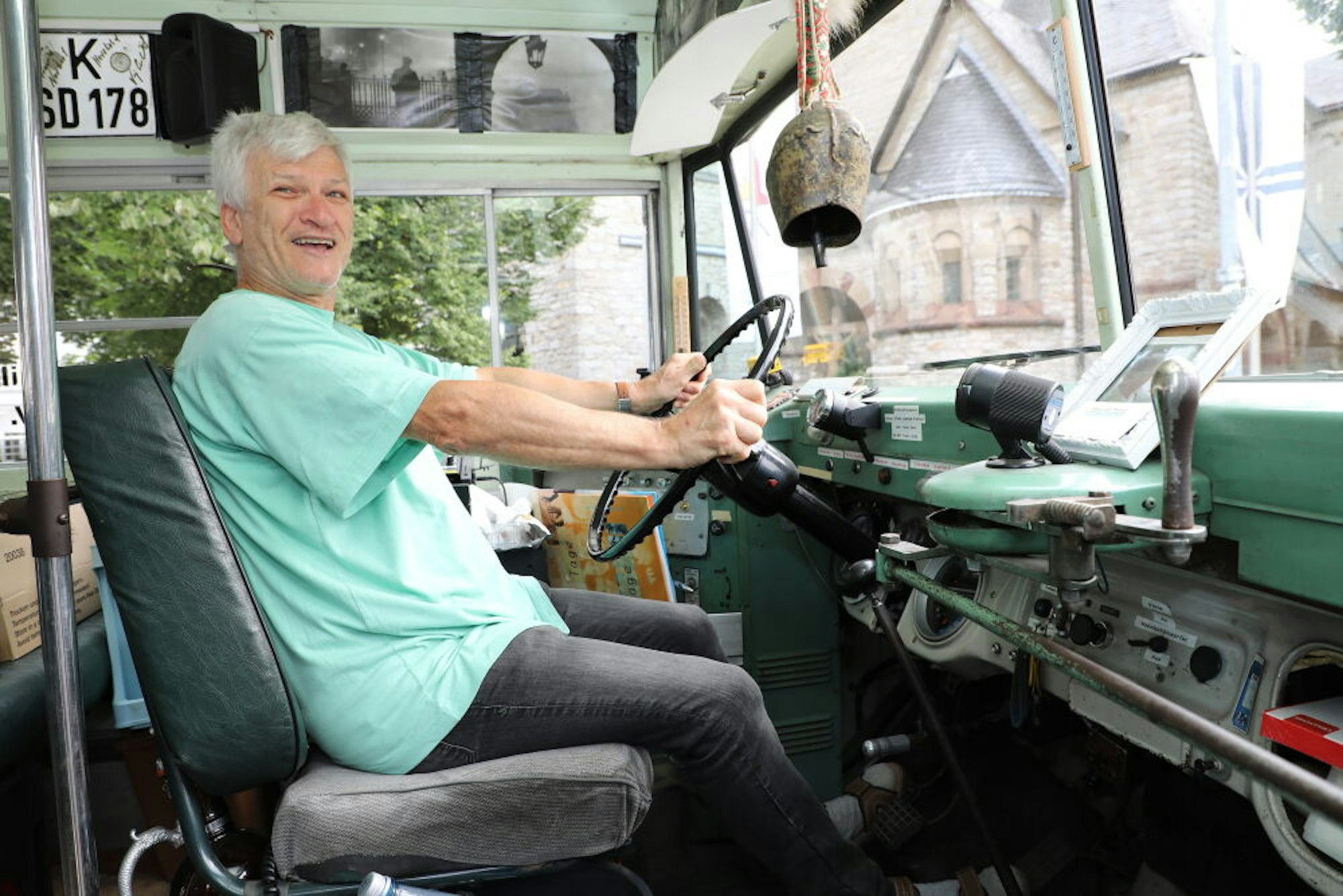 Am Steuer des Oldtimer-Busses von 1980: Marcel Hoffmann.