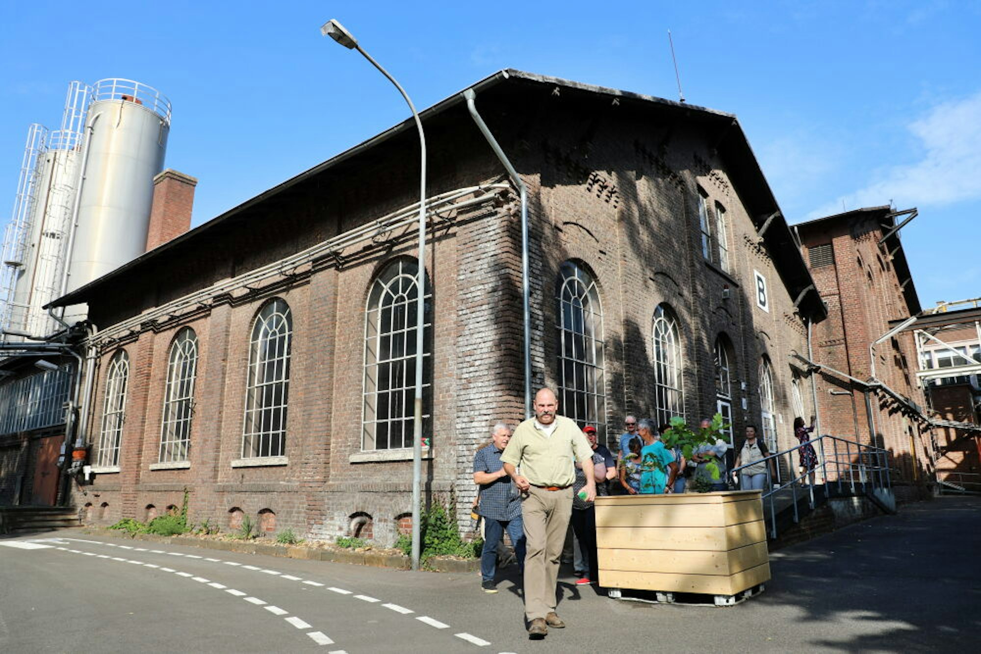 Sträucher wuchern am Heidkamper Tor, dem früheren Mitarbeiterzugang zur Papierfabrik Zanders. Doch mit Udo Gottschling wird die Zeit zurückgedreht, wird das 2021 stillgelegte Werk wieder lebendig und geht es auf eine Zeitreise in jenes industrielles Erbe, das ein neuer Stadtteil von Bergisch Gladbach werden soll.