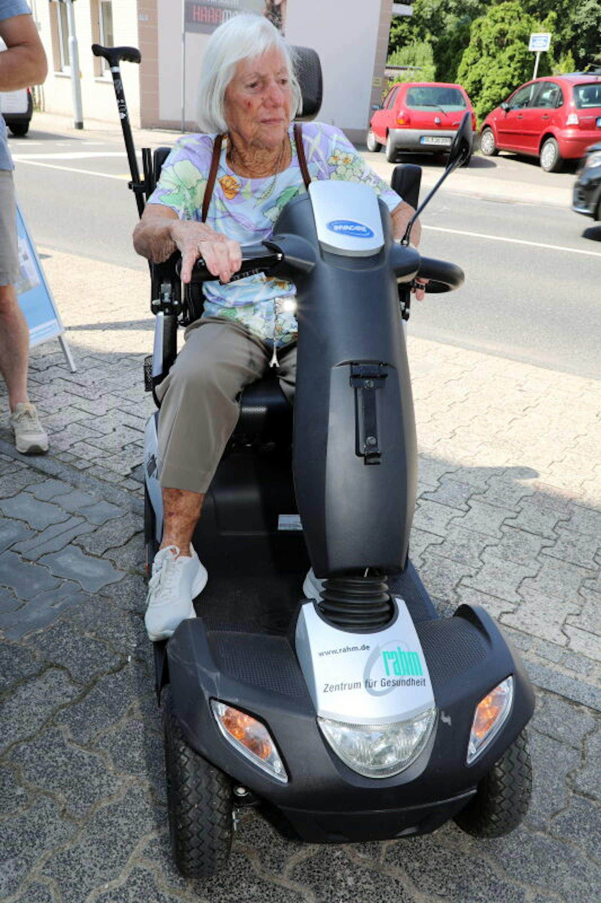 Helga Kozik fährt die Hofferhofer Straße hinunter. Jahrzehntelang fuhr sie Rad. Vor wenigen Wochen ist sie auf ein vierrädriges Elektromobil umgestiegen. „Schicker Porsche“, sagt ein Bekannter und bewundert, wie versiert die Seniorin das Gefährt steuert.