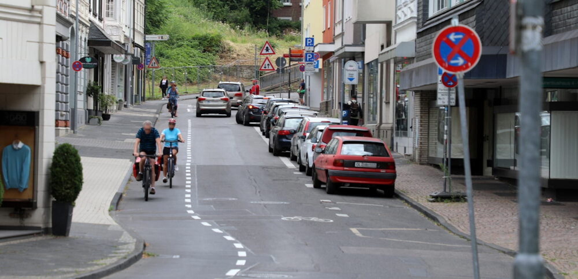 An diesem Morgen gut genutzt: Seitdem es den Fahrradstreifen an der Laurentiusstraße gibt, sind Parkplätze weggefallen.