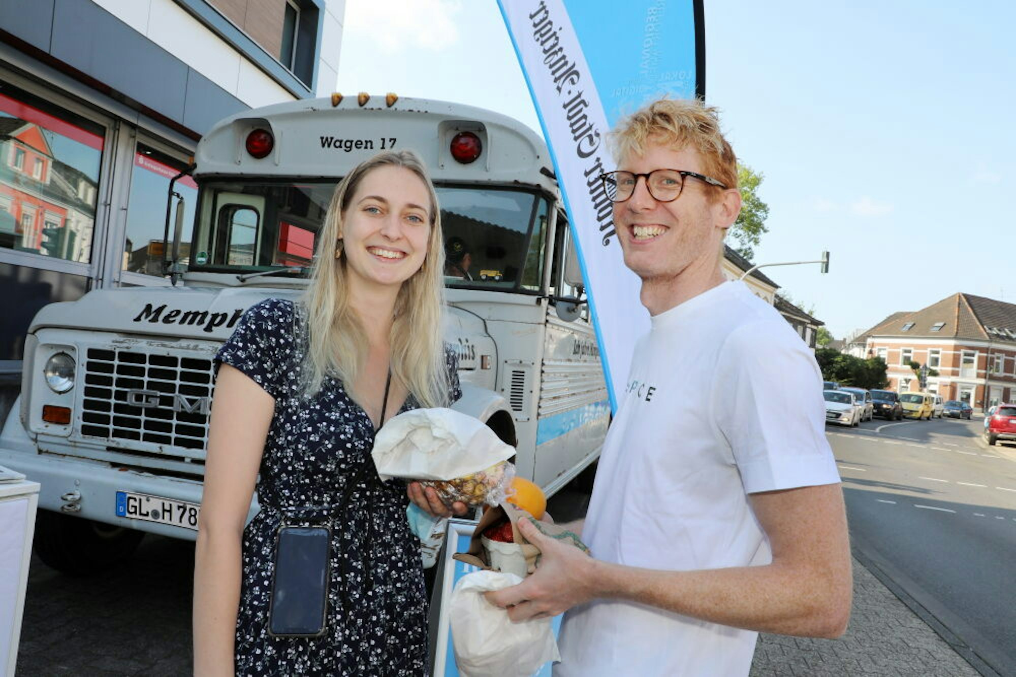 Fürs Frühstück eingekauft: Henrike Weins und Andreas Bürger.