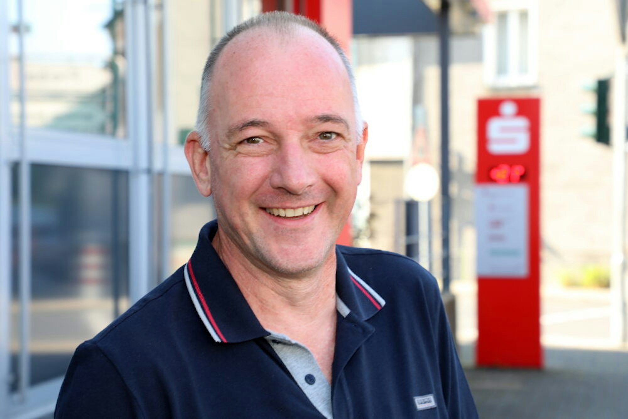 Jörg Schiffbauer ist schon am Redaktionsmobil, da ist dessen Stand noch gar nicht aufgebaut. Der Leiter der Regionalfiliale Hoffnungsthal der Kreissparkasse Köln stellt den Standplatz fürs Redaktionsmobil zur Verfügung und hat ihn am Vortag abgesperrt. Nun hilf er mit Norbert Kuhl und Benedikt Promberger von der Humanitären Hilfe Overath, die das Redaktionsmobil zur Verfügung stellt, auch noch beim Aufbau.