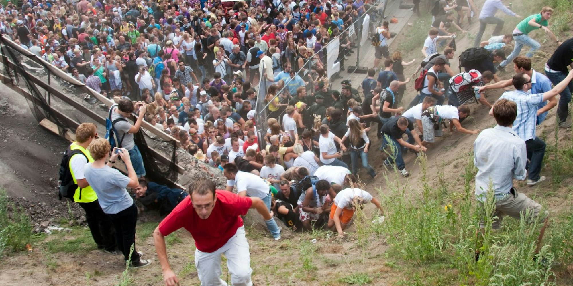 Die Zugangsstraßen zum Love Parade-Gelände waren 2010 völlig überfüllt.