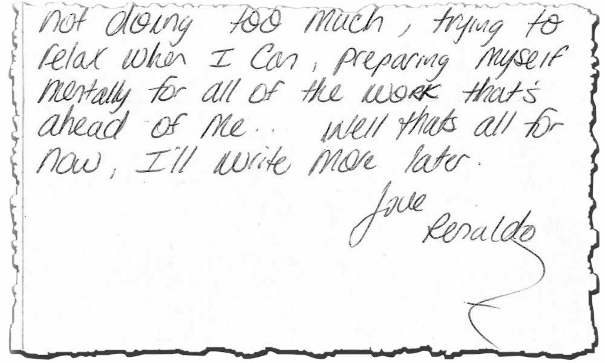 Manche „lifespark“-Mitglieder berichten von Avancen der Häftlinge. Beziehungen sind entstanden, es gab auch schon Hochzeiten im Knast. Ob auch Renaldo sich mehr vorstellen könnte als eine Brieffreundschaft? Für Anna-Lena Gruenagel steht die Frage nicht zur Debatte. „Das ist eine Brieffreundschaft, da ist für mich auch die klare Grenze.“ Das Thema Liebesbeziehungen klammert sie daher in den Briefen an ihren Freund in Florida grundsätzlich aus. „Ich will bei ihm gar nicht erst etwas Falsches wecken.“