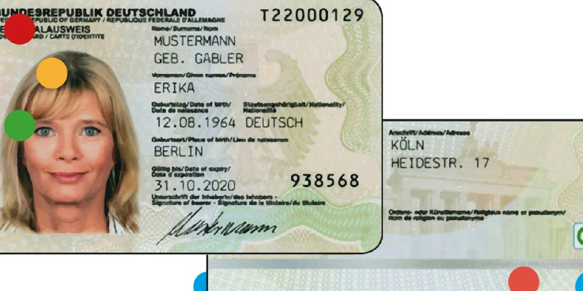 Das seit 2010 gültige Personalausweis-Muster ist mit dem Geburtsort Berlin und dem Wohnort Köln versehen.